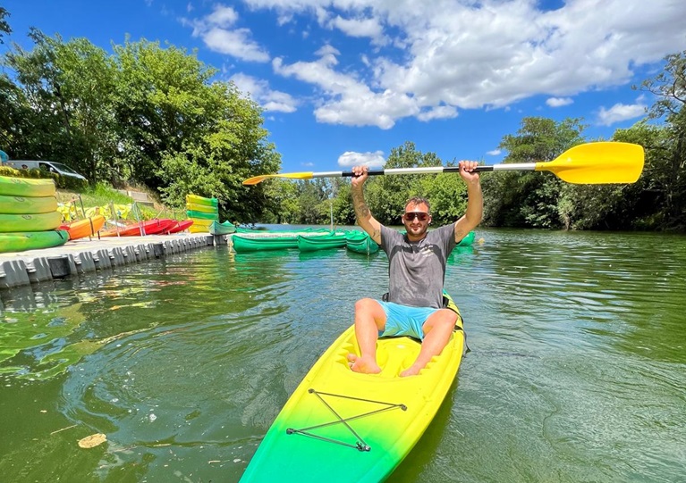 Activités nautiques sur l'Hérault, à la guinguette de Bessan : stand up paddle, canoë, kayak, pédalo, sortie apéro nocturne, feu d'artifice.