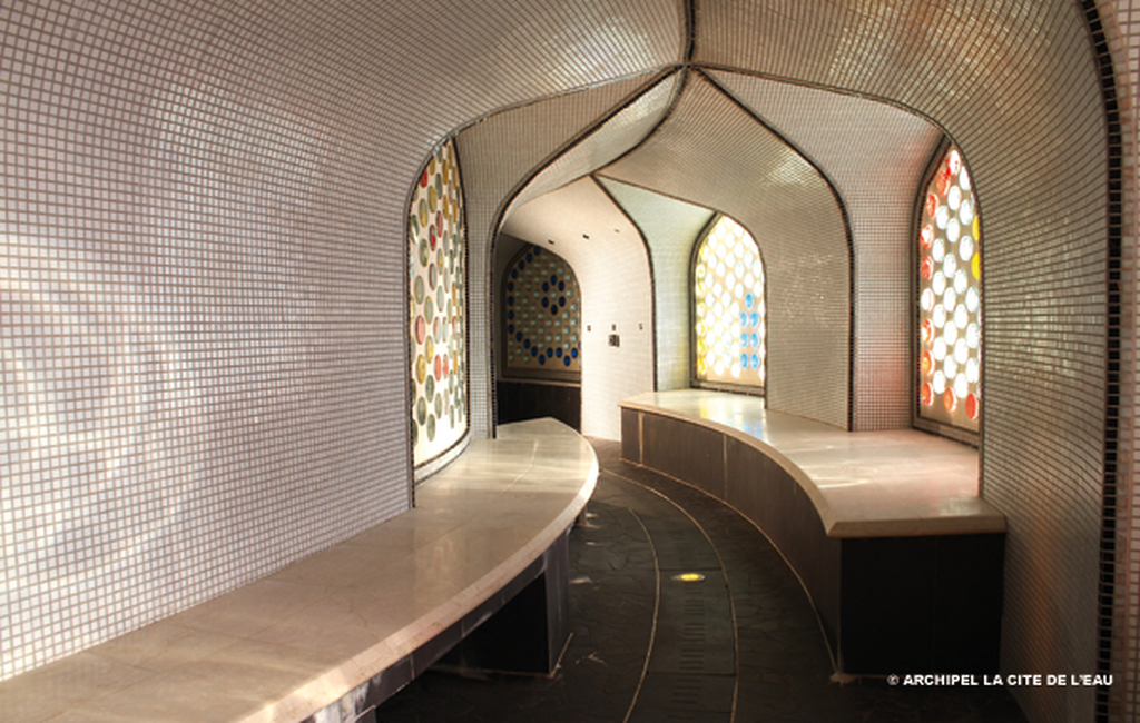 Découvrez l’Orient et ses rituels beautés, le hammam d’architecture traditionnelle, entre mosaïque et marbre.