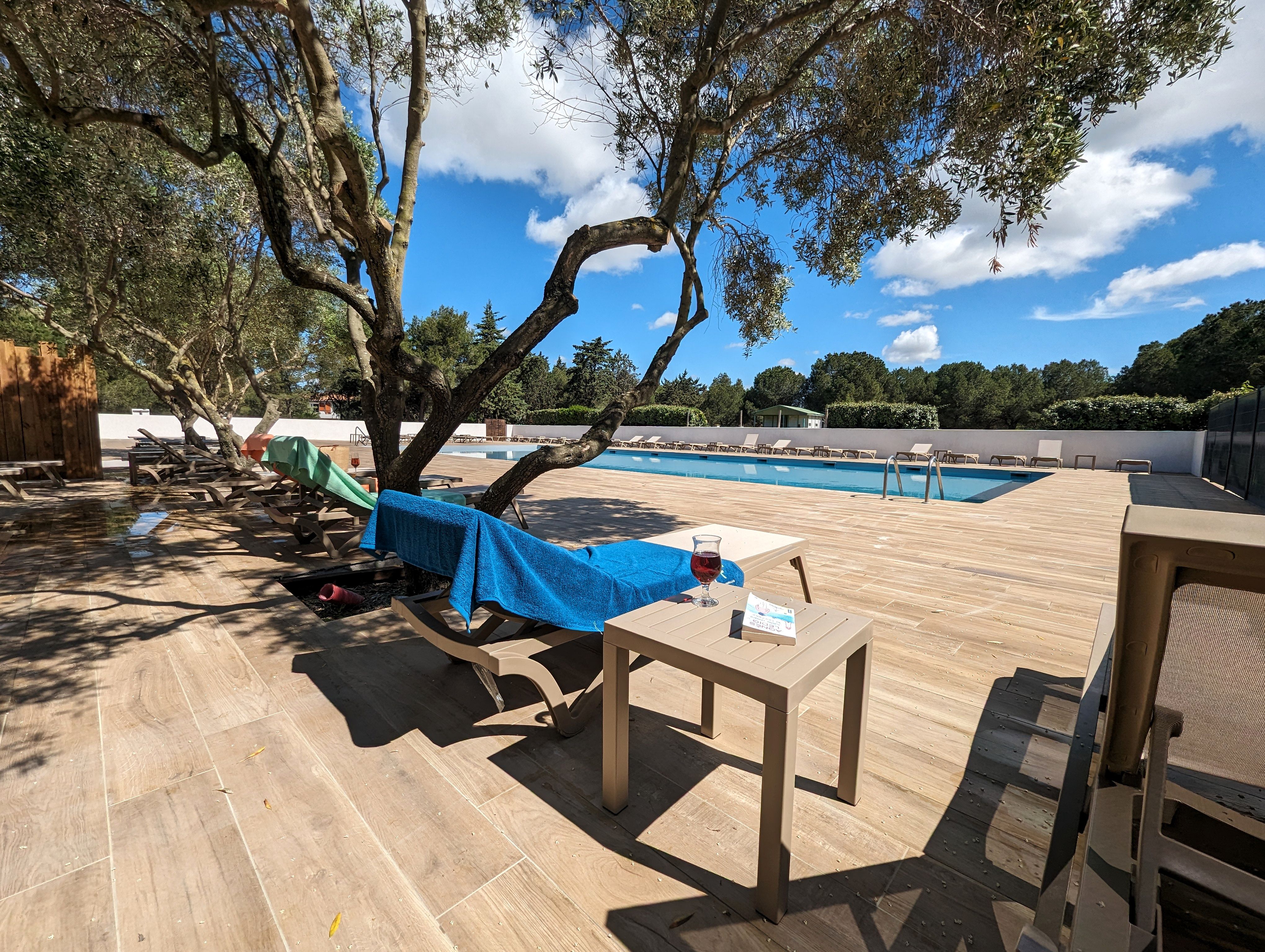 Côté détente, vous profiterez de la grande piscine extérieure chauffée de mi-avril à fin septembre avec pataugeoire en accès libre, d’un bar-lounge et de nombreux espaces extérieurs pour lire ou profiter du parc.