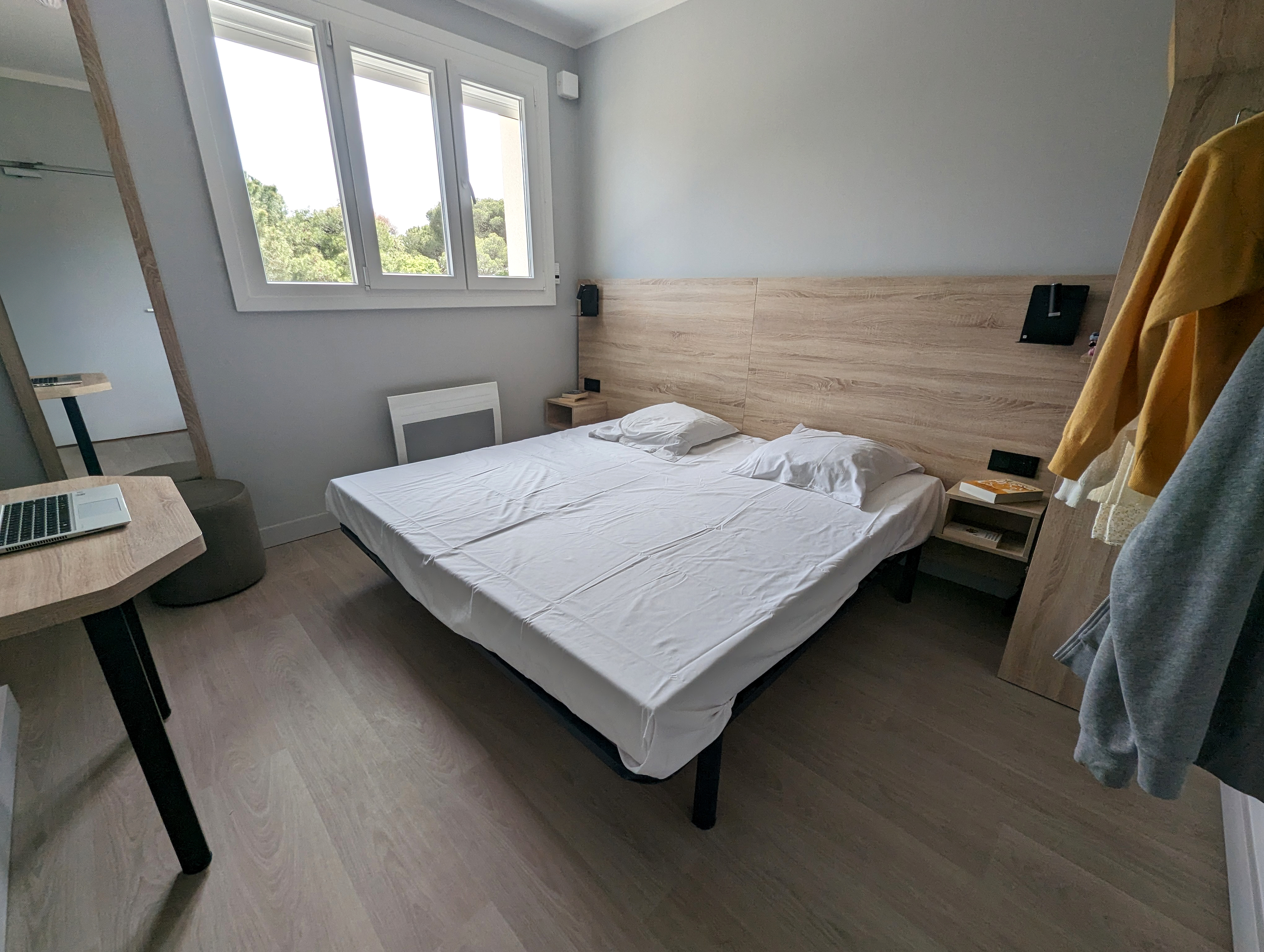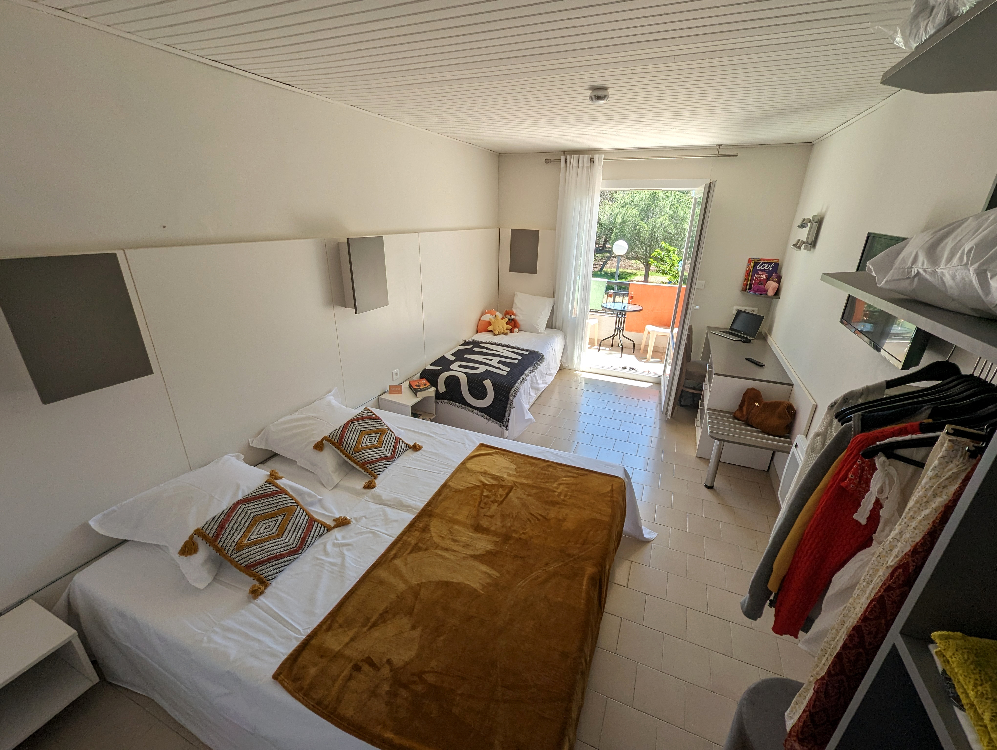 Dans un parc arboré de 3,5 ha le village de vacances totalement rénové en 2024 compte près de 100 chambres de 1 à 4 personnes avec balcons ou terrasses, certaines communicantes pour former des hébergements « famille » de 4 à 5 personnes.