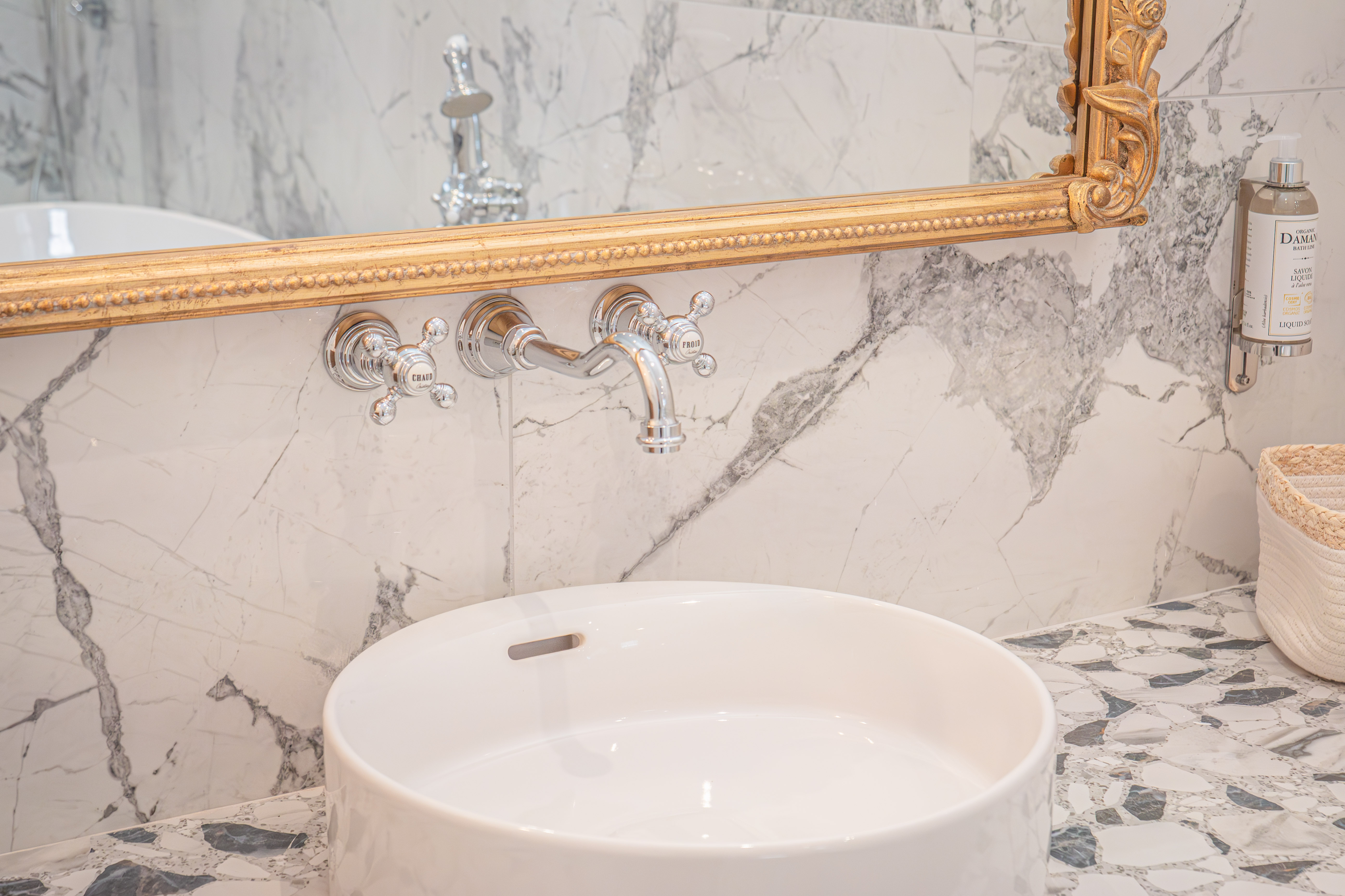 Terrasse sur cour du château, plafond mouluré, spa privatif.