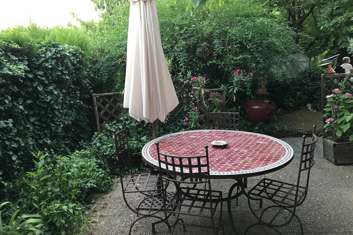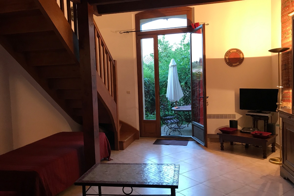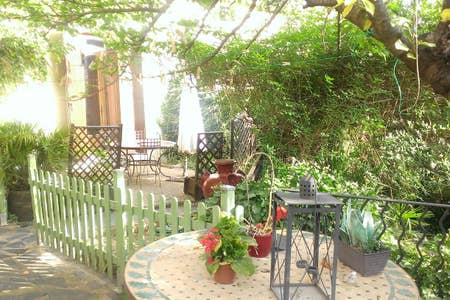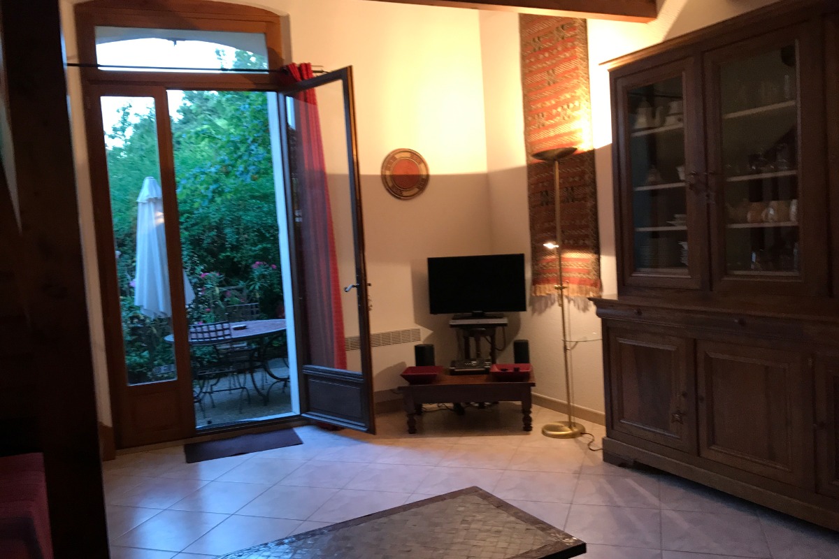 À 100m du centre-village, à 25km du bord de mer. Piscine collective. Parking dans la rue; terrasse et jardin privés, salon de jardin et barbecue;