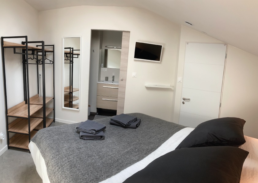 L'appartement est entièrement rénové dans une ancienne maison de caractère. Il est entièrement équipé et la literie est neuve (lit en 160 avec possibilité 2x80), et dans la chambre parentale, sommiers électriques.