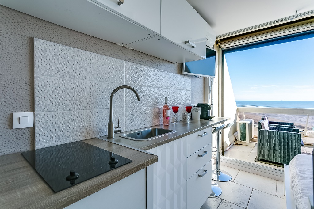 Au cœur du village naturiste, face à la mer, dans Héliopolis. Studio entièrement refait à neuf, au 4ème étage avec une fantastique vue mer.