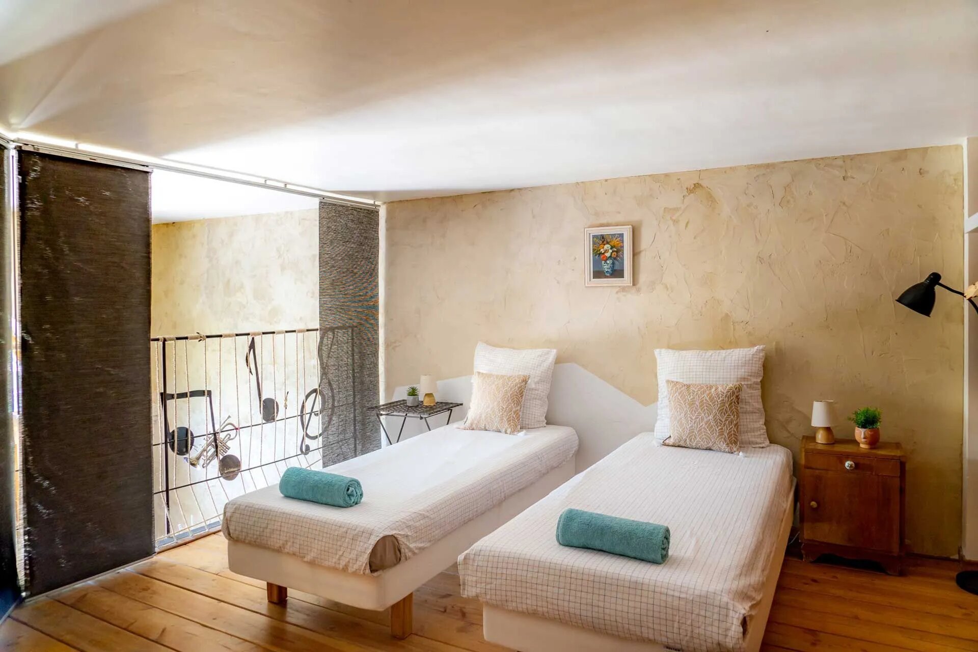 Un grand jardin clos ombragé et ensoleillé, une cuisine d’été et une grande piscine. Très proche du centre de Pézenas une ville historique et animée. Les Ursulines est un couvent du XIXe siècle rénové avec goût, converti en 5 appartements de charme. Décorés de sculptures originales, un mélange de meubles modernes et anciens dans un environnement spacieux et de lumineux.