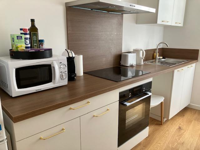 Coin cuisine Séjour / Salle à manger Draps compris Aspirateur Cafetière Four Lave linge privatif Micro-ondes Plaque à induction Sèche cheveux Chauffage Télévision Toilettes séparées