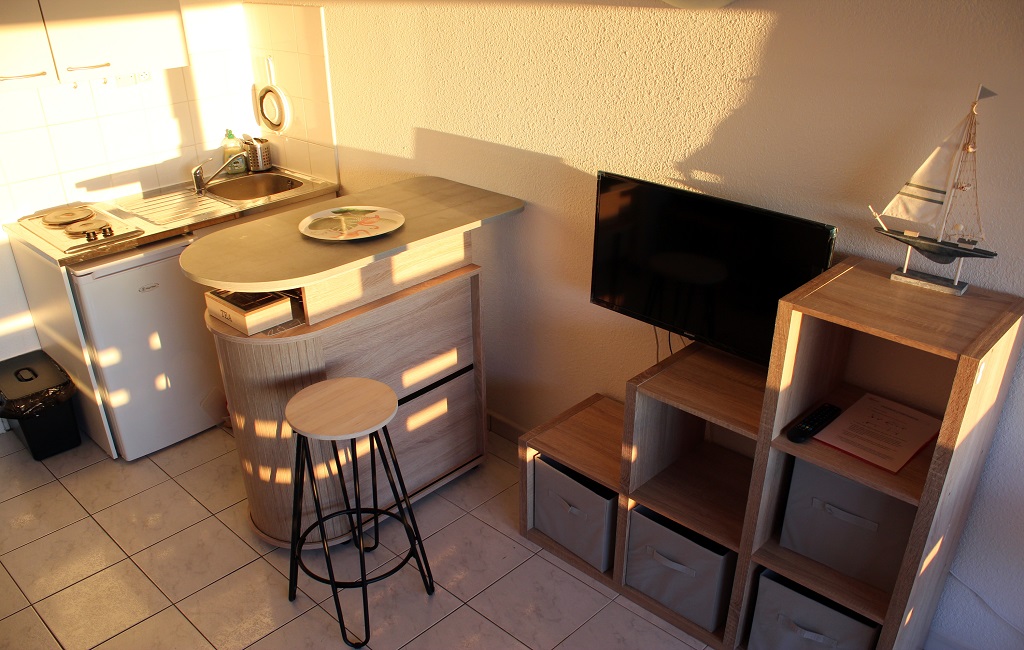 Dépaysement absolu avec ce studio cabine classé 2 étoiles pour une capacité de 2 personnes (couchage possible pour 4 personnes), rénové, avec sa vue imprenable sur la sortie des bateaux en mer, idéalement exposé ouest pour assister aux couchers de soleil chaque soir !