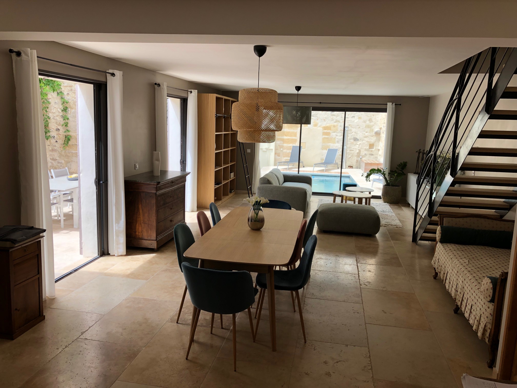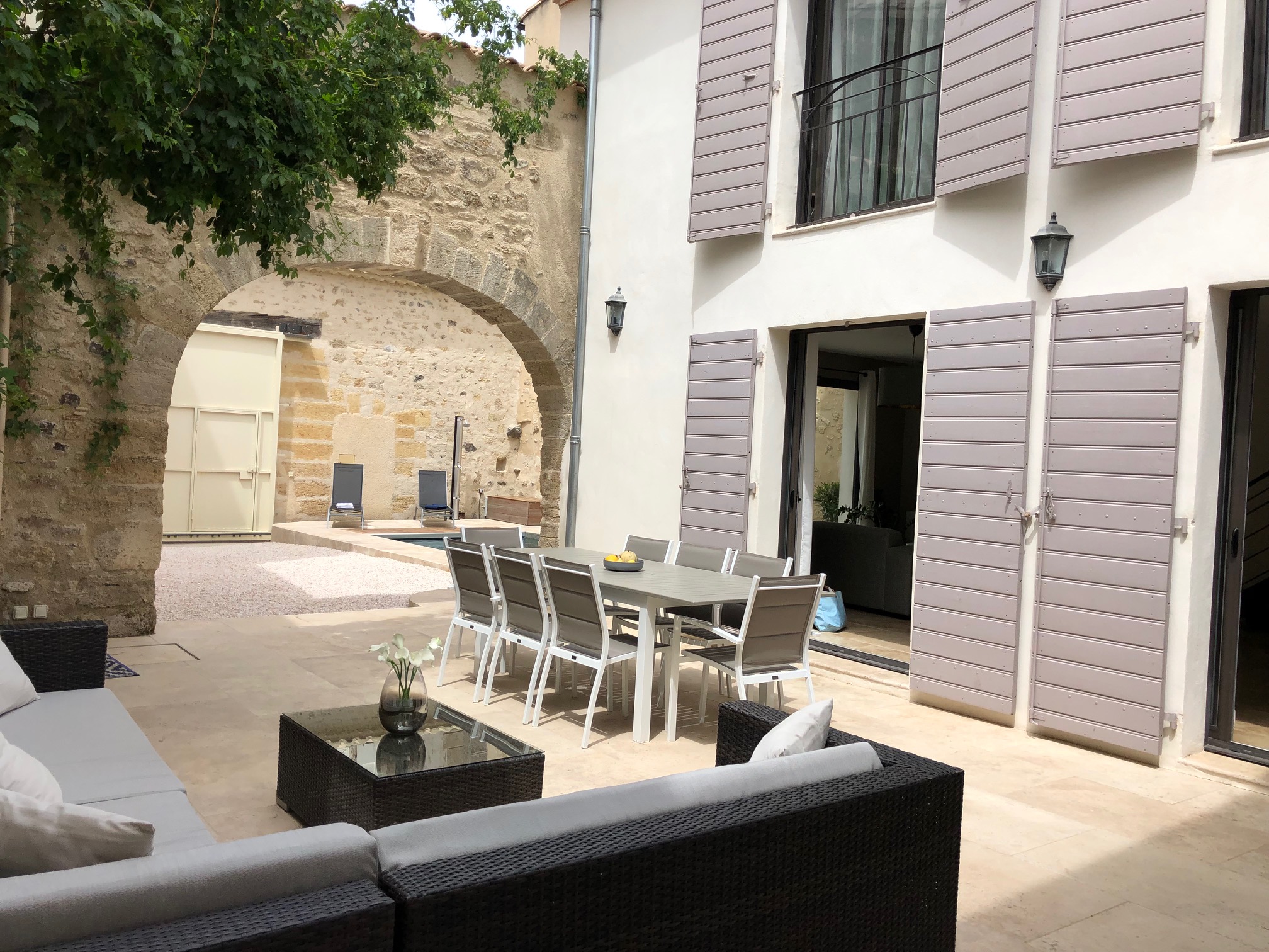 Maison de caractère avec piscine dans le centre historique de Pézenas. Ancien chai remis au goût du jour où l'histoire d'hier et le confort d'aujourd'hui se conjuguent.
