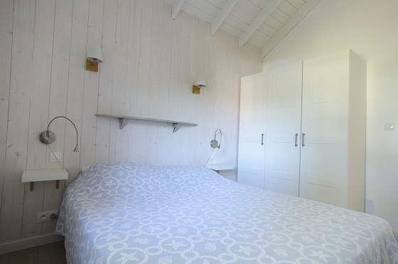 Au calme, sous les pins, à 1 km de la plage et du centre du village, maisonnette de plain pied récente et décorée sur le thème mer.