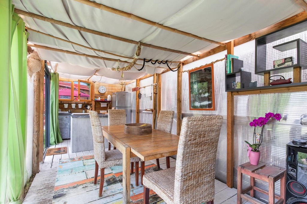 Espace extérieur, grande cuisine extérieure entièrement équipée, respect de l'environnement
