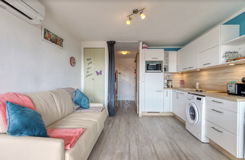 Studio cabine climatisé, classé 2 étoiles pour une capacité de 4 personnes, tout rénové, très confortable, très bien équipé, avec vue mer.