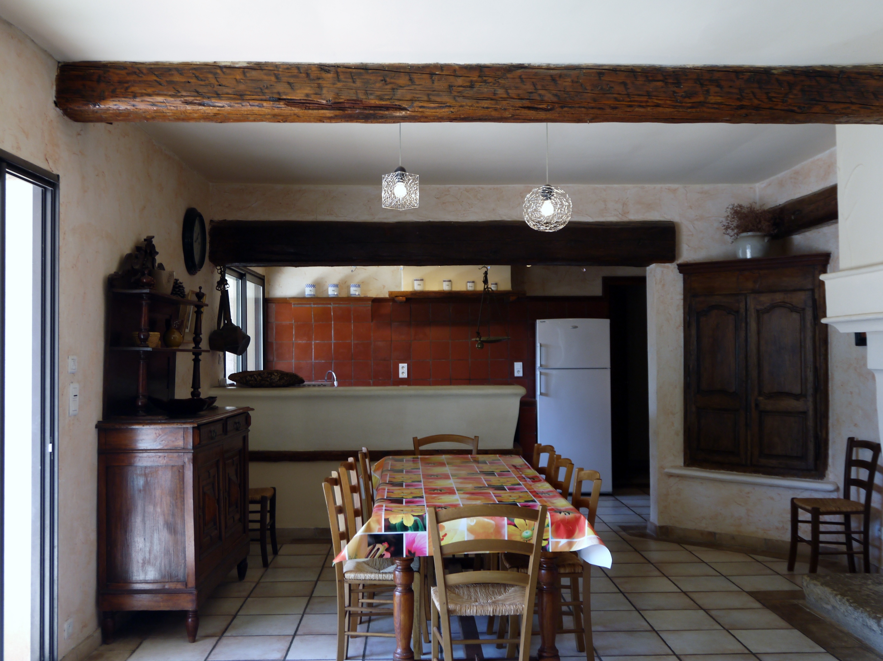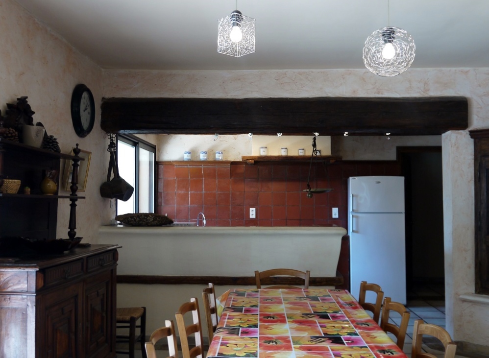 - Grand séjour avec coin cuisine et coin salon (cuisine tout équipée: four, micro-ondes, réfrigérateur avec compartiment congélateur, cafetière filtre + Senseo)