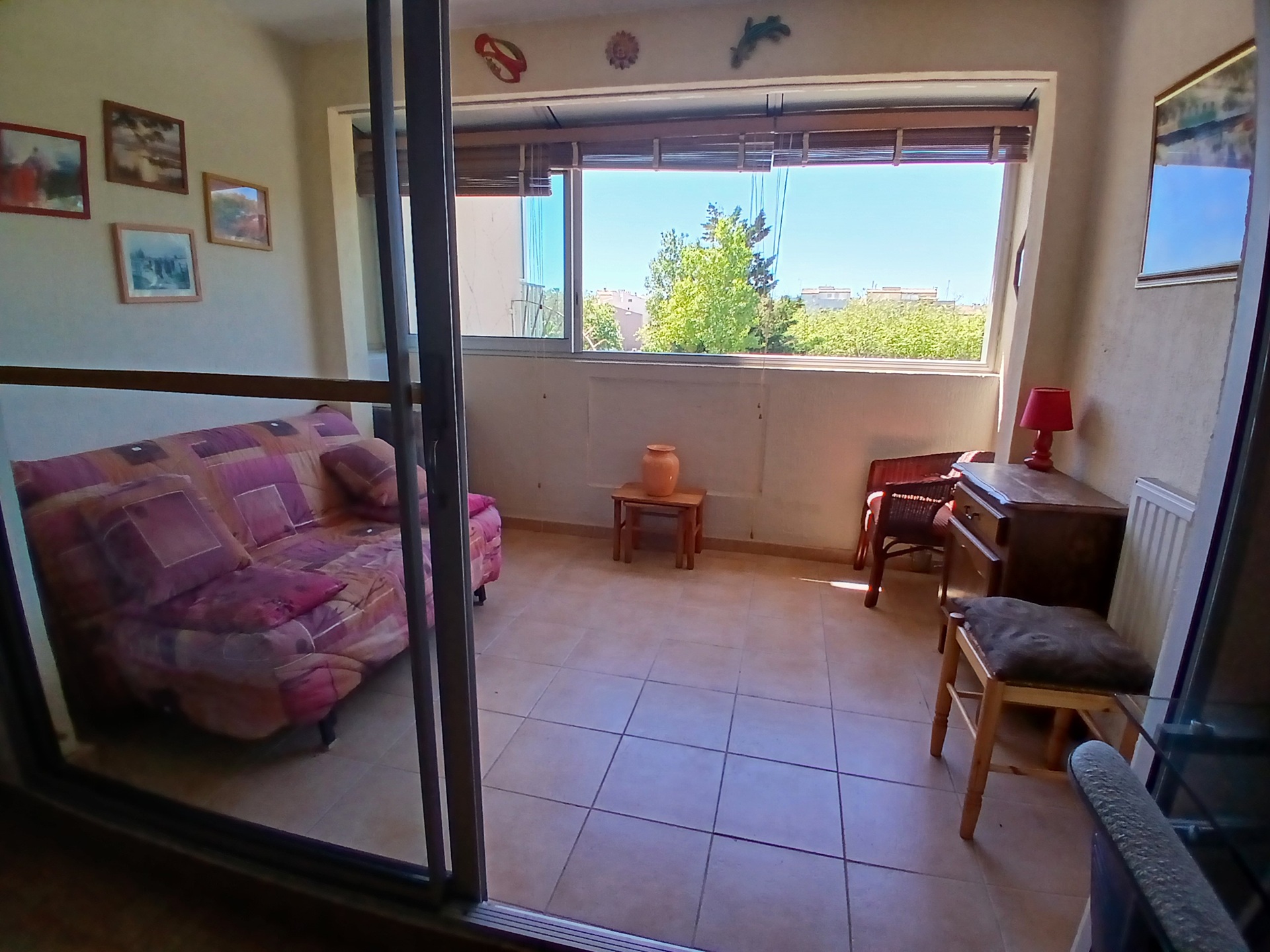 Coin cuisine Séjour / Salle à manger Véranda Canapé convertible Lit 140 cm Cafetière Congélateur Grille-pain Matériel de repassage Machine à café Micro-ondes Plaque vitrocéramique Réfrigérateur Sèche cheveux Double vitrage Ventilateur Câble / Satellite Prise de télévision Télévision Douche 1 salle de bain (privée) Non fumeur