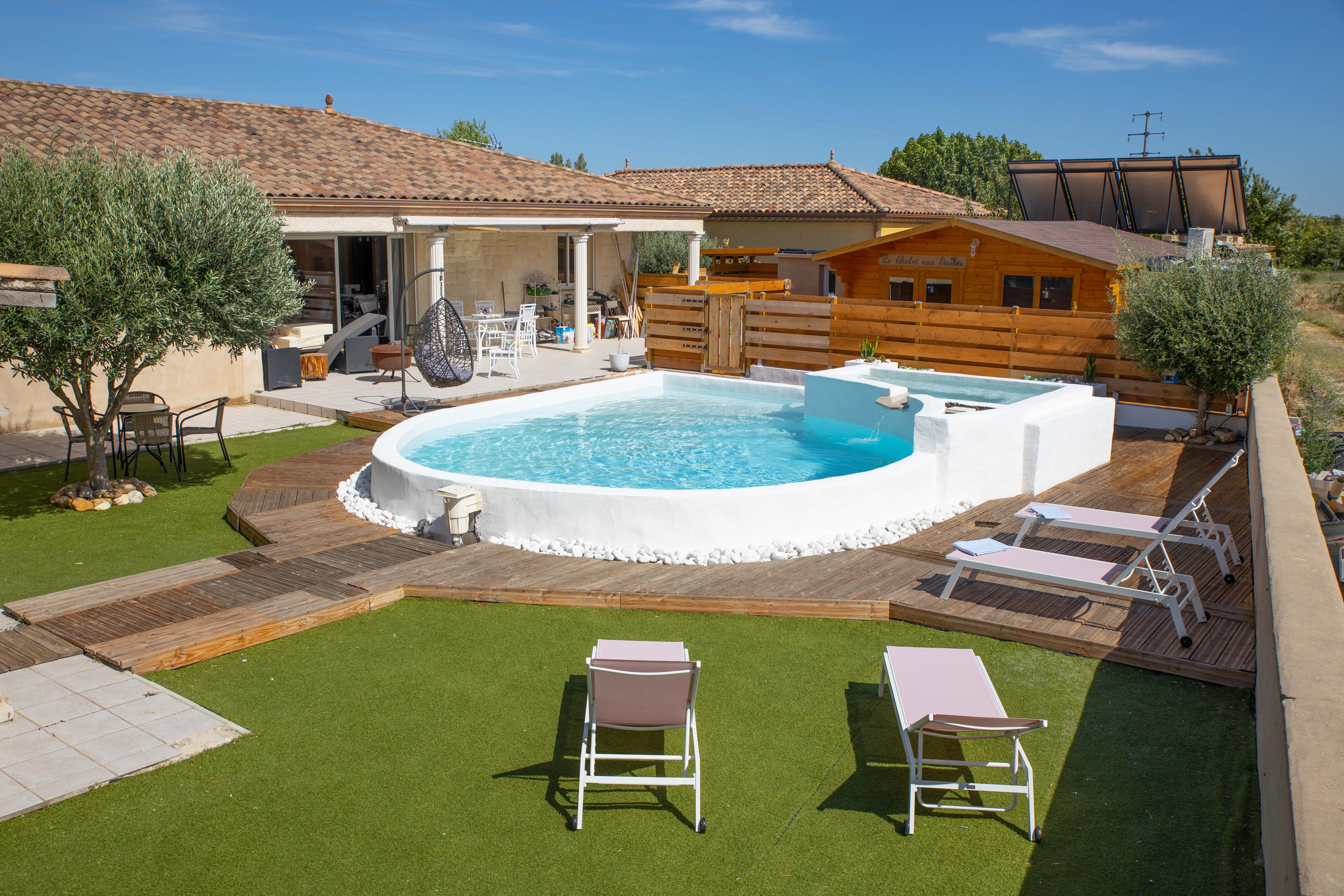 Le chalet aux étoiles vous offrira un séjour dans un petit havre de paix. Vous profiterez d'un environnement calme et relaxant avec toutes les commodités dont vous rêvez : piscine, jacuzzi, spa chauffé, sauna et Hammam. terrasse privée et chaise longues... Vous disposez d'un barbecue privé.
