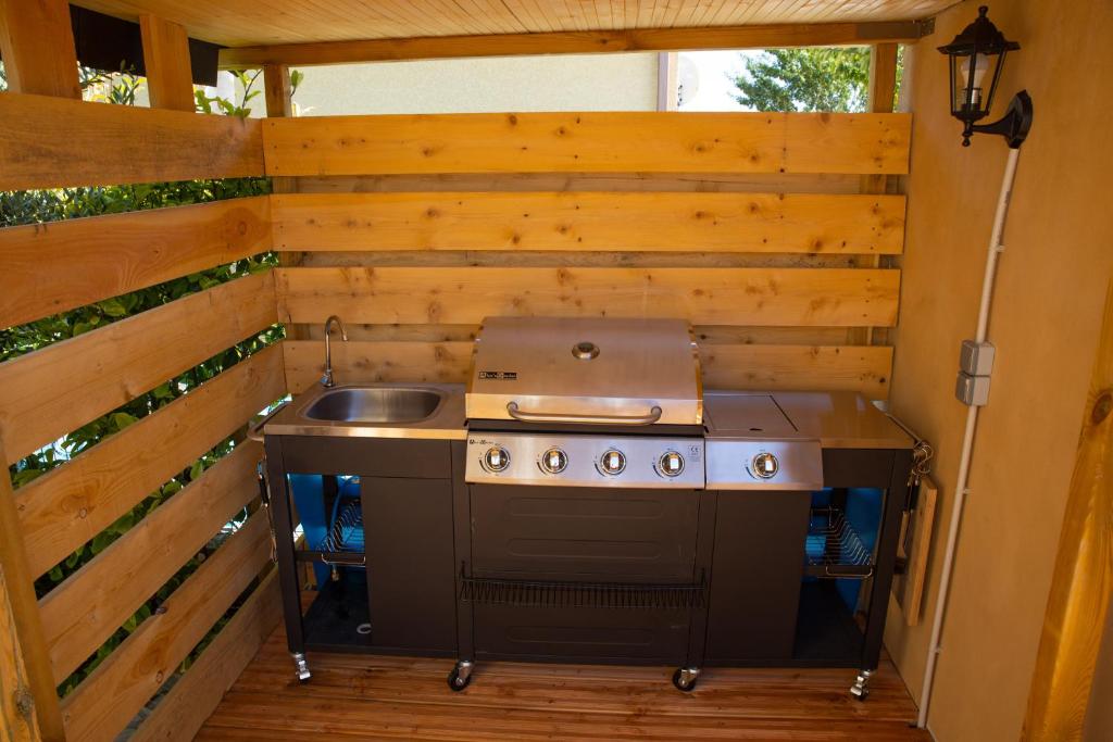 Vous trouverez un bar sur place et, en été, vous pourrez utiliser le barbecue.