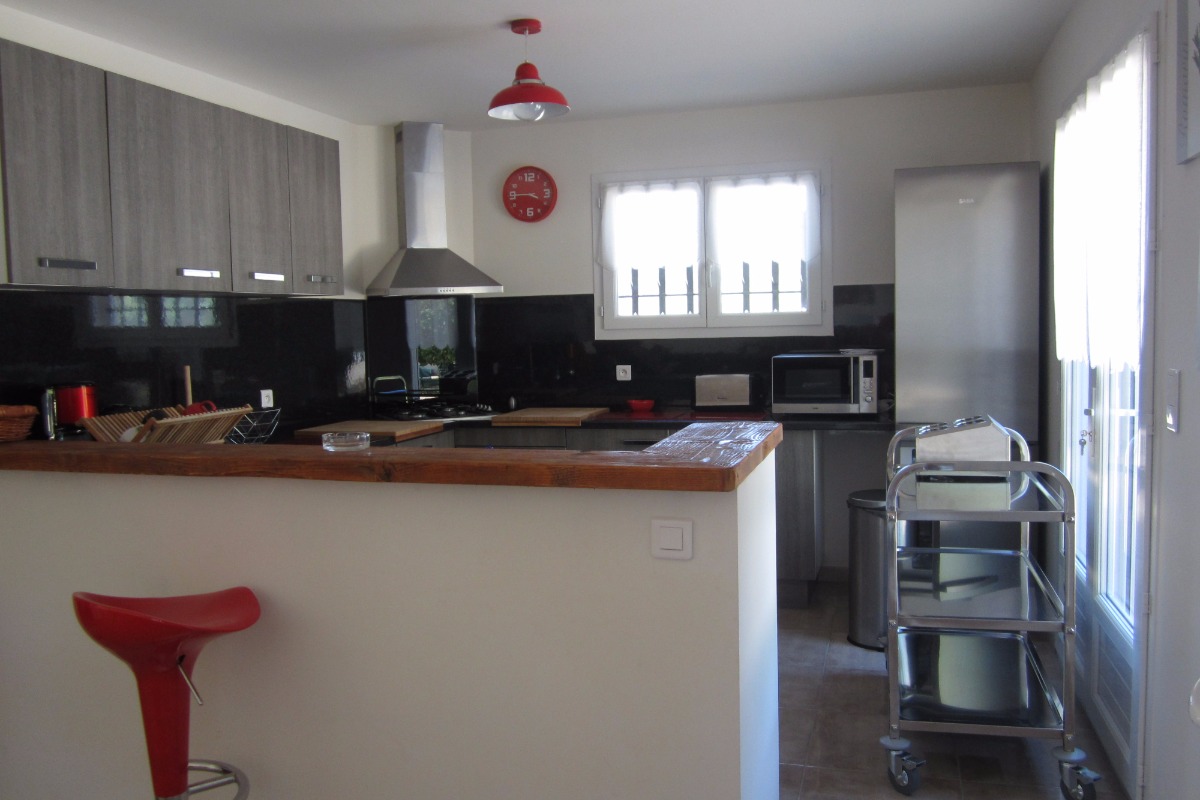 Séjour / coin cuisine. Télévision, lecteur DVD, cafetière classique à filtres, bouilloire électrique, friteuse électrique, micro-onde, réfrigérateur-congélateur, lave-linge commun, lave-vaisselle, internet, aspirateur, table et fer à repasser, 2 sèche-cheveux. Climatisation réversible, détecteur de fumée, extincteur d'incendie. Piscine - Clôture de sécurité.