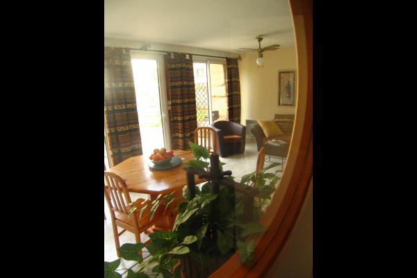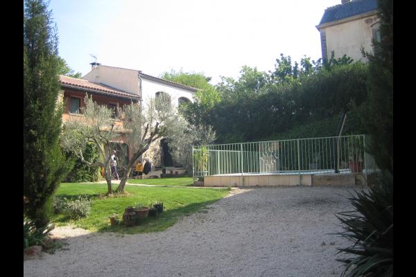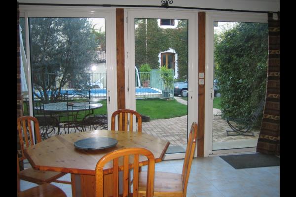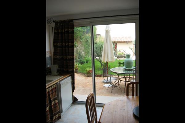 De la villa accès direct à la terrasse donnant sur un jardin ombragé et la piscine sécurisée.