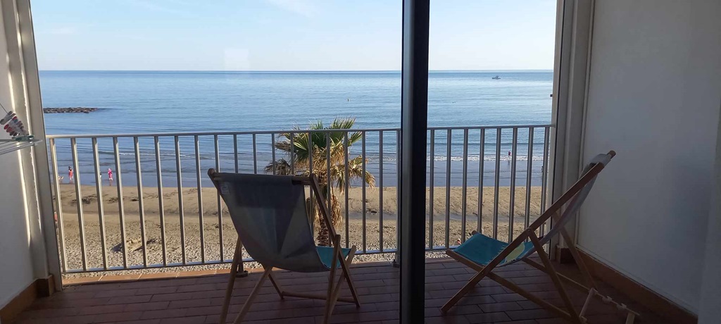 Studio cabine idéalement situé en première ligne, face à la mer et au cœur de la station familiale du Grau d'Agde, port de pêche et de plaisance. Accès direct à la plage sans route à traverser.