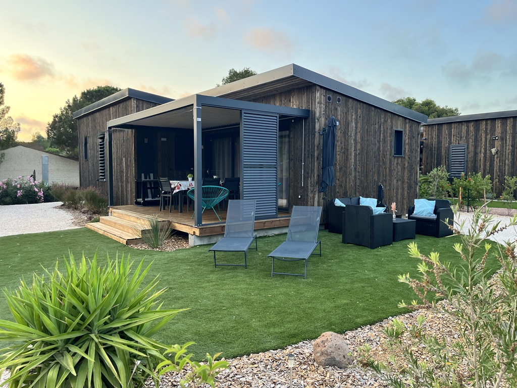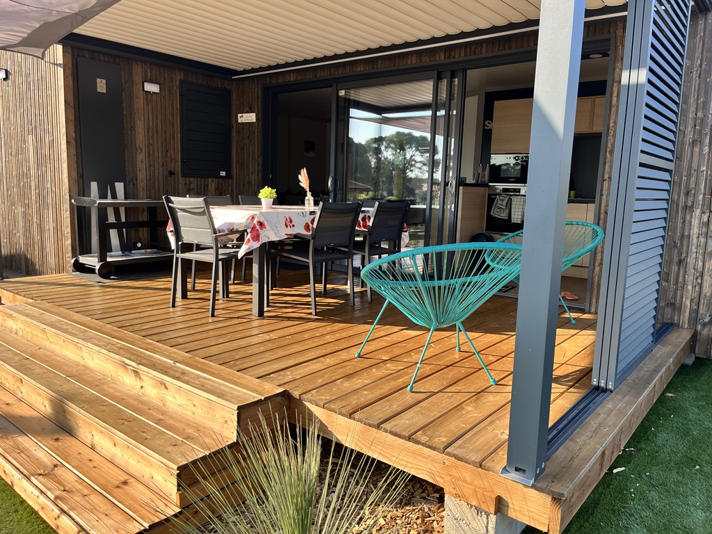 Le chalet spacieux de 56m2 est situé dans le domaine piétonnier des "Jardins de Batipaume", idéal pour un séjour confortable, il dispose d'une terrasse privée de 14m2, aménagé avec une pergola bioclimatique, offrant ainsi un espace ombragé et agréable, le tout entouré d'un jardin paysager.