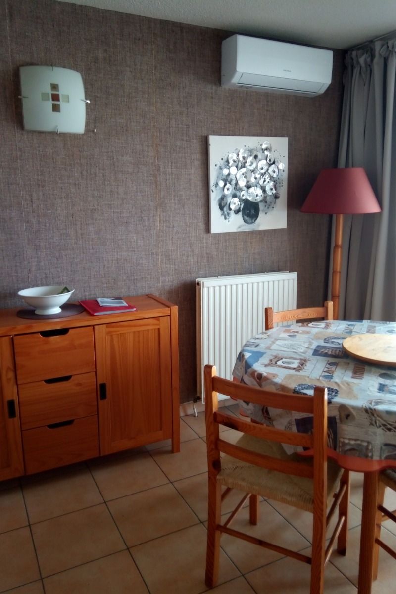 Cet appartement climatisé comprend une chambre avec un lit double, une cabine avec lits superposés pour les enfants, et un canapé-lit neuf (clic-clac) dans le séjour, permettant de recevoir jusqu’à 6 personnes. Que vous veniez en couple, en famille ou entre amis, vous trouverez des couchages adaptés à vos besoins.