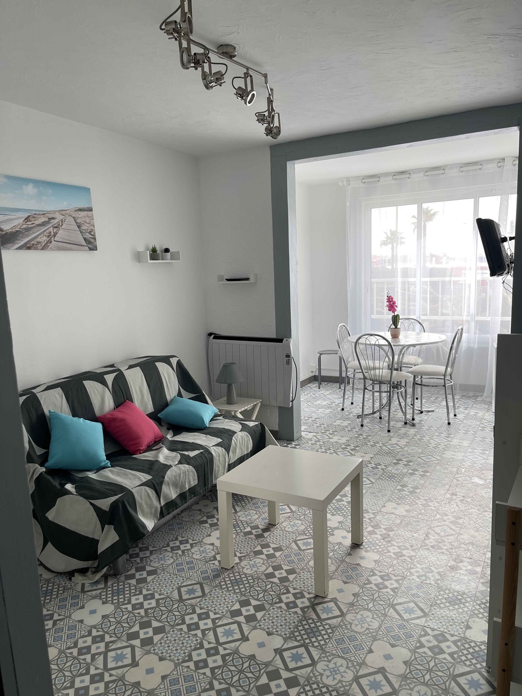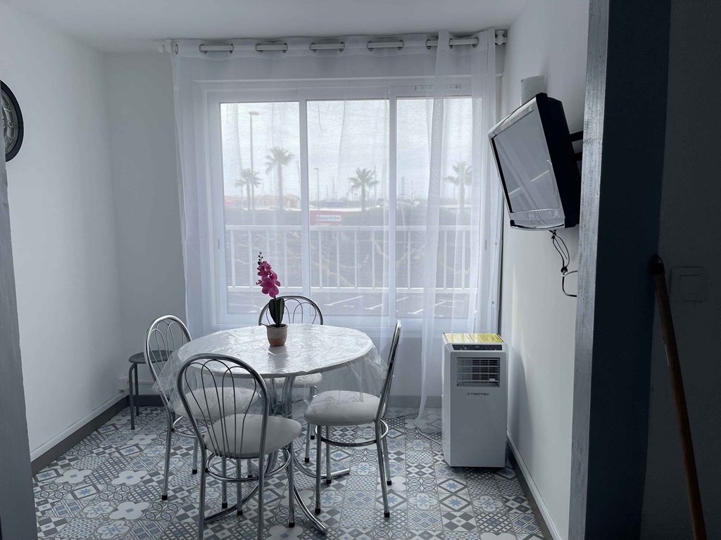 Situation idéale au Cap d'Agde. 300m de la plage du Môle et de La Conque, 5mn à pied du Port et de la rue de la Flânerie avec tous les commerces. Logement en RDC et climatisation mobile.