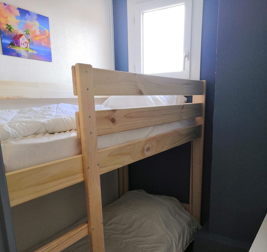Climatisé, avec 2 chambres pour 4 personnes, il se situe au 4ème étage sans ascenseur. Il dispose de tous les équipements nécessaires pour profiter d'un très bon séjour en bord de mer.