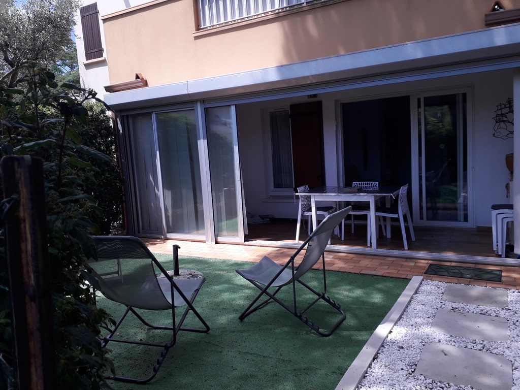 Appartement T2, 4 personnes, plein Sud, dans résidence calme, fermée, avec piscine et parking individuel, jardin clôturé et ombragé, à 800m à pied du port ou de la plage