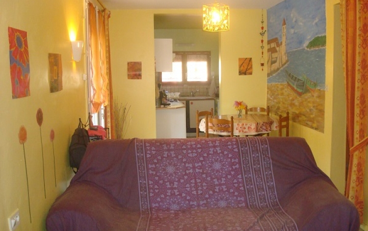 Maison individuelle de 68 m² pour 4 personnes maximum. Séjour, cuisine, 2 chambres, salle de bain, WC, jardin et parking
