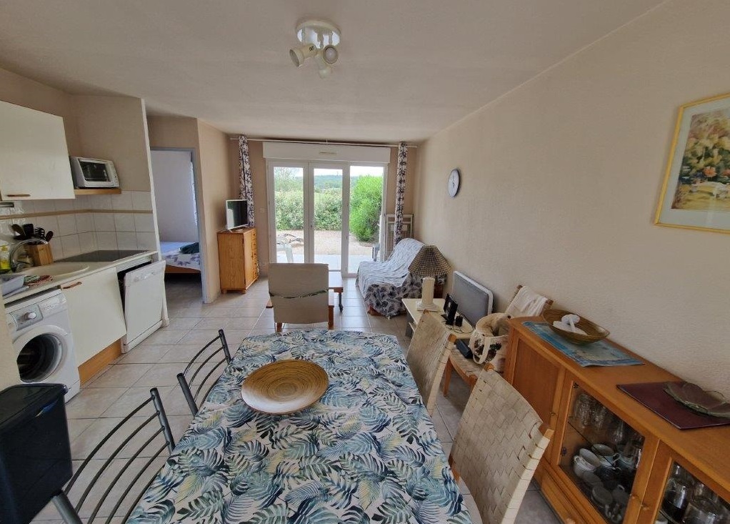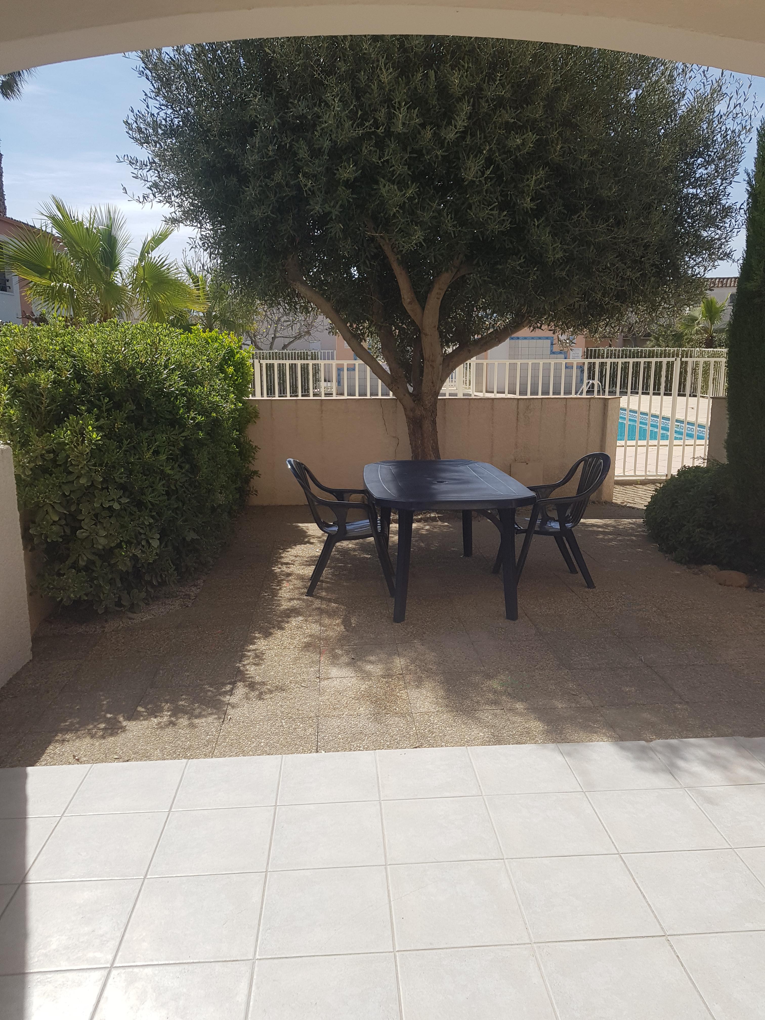Appartement familial en rez-de-jardin de 38 m², climatisé, avec 2 terrasses (côté piscine et côté golf) dont 1 sans vis-à vis, salon de jardin et barbecue.
