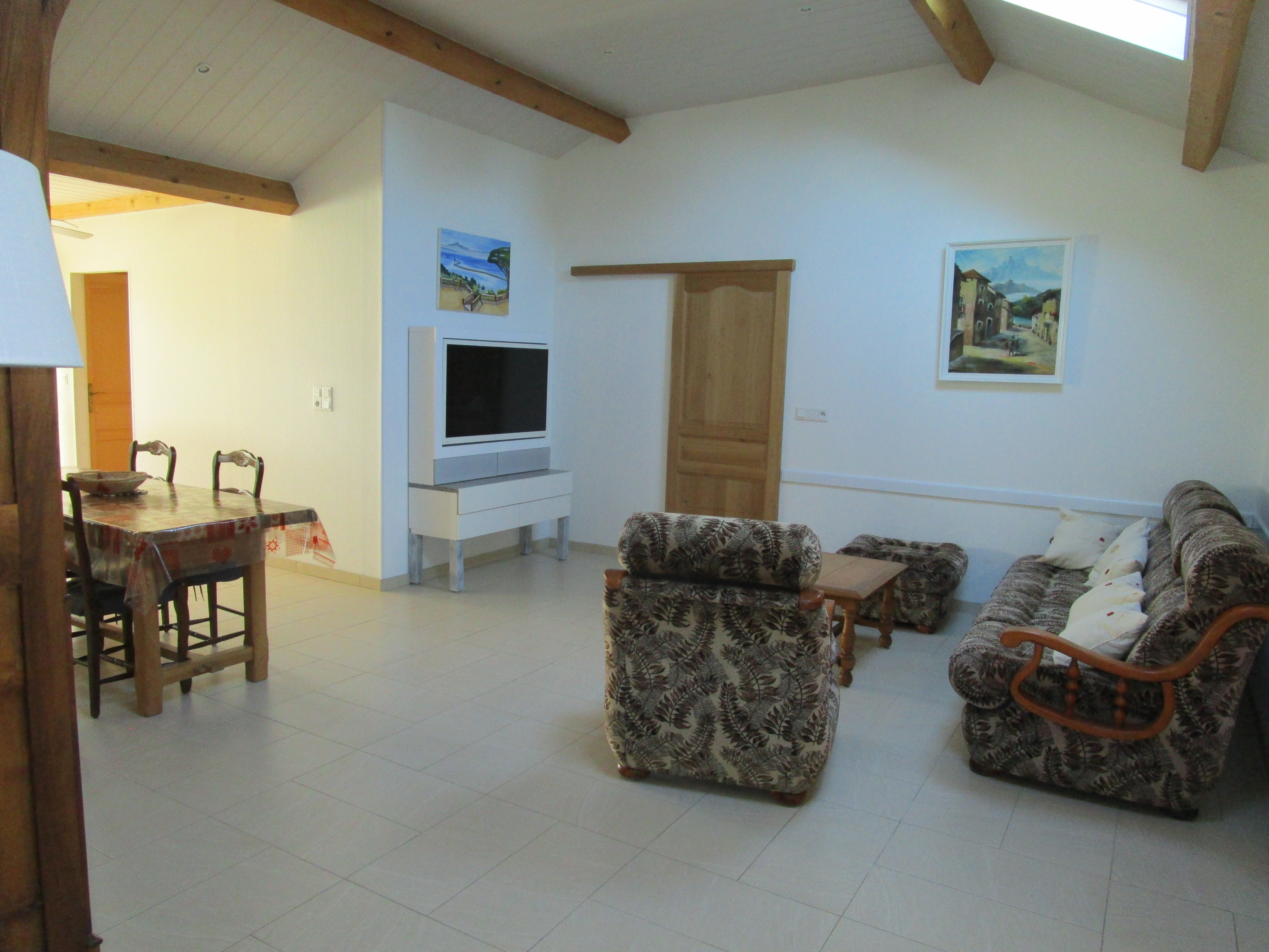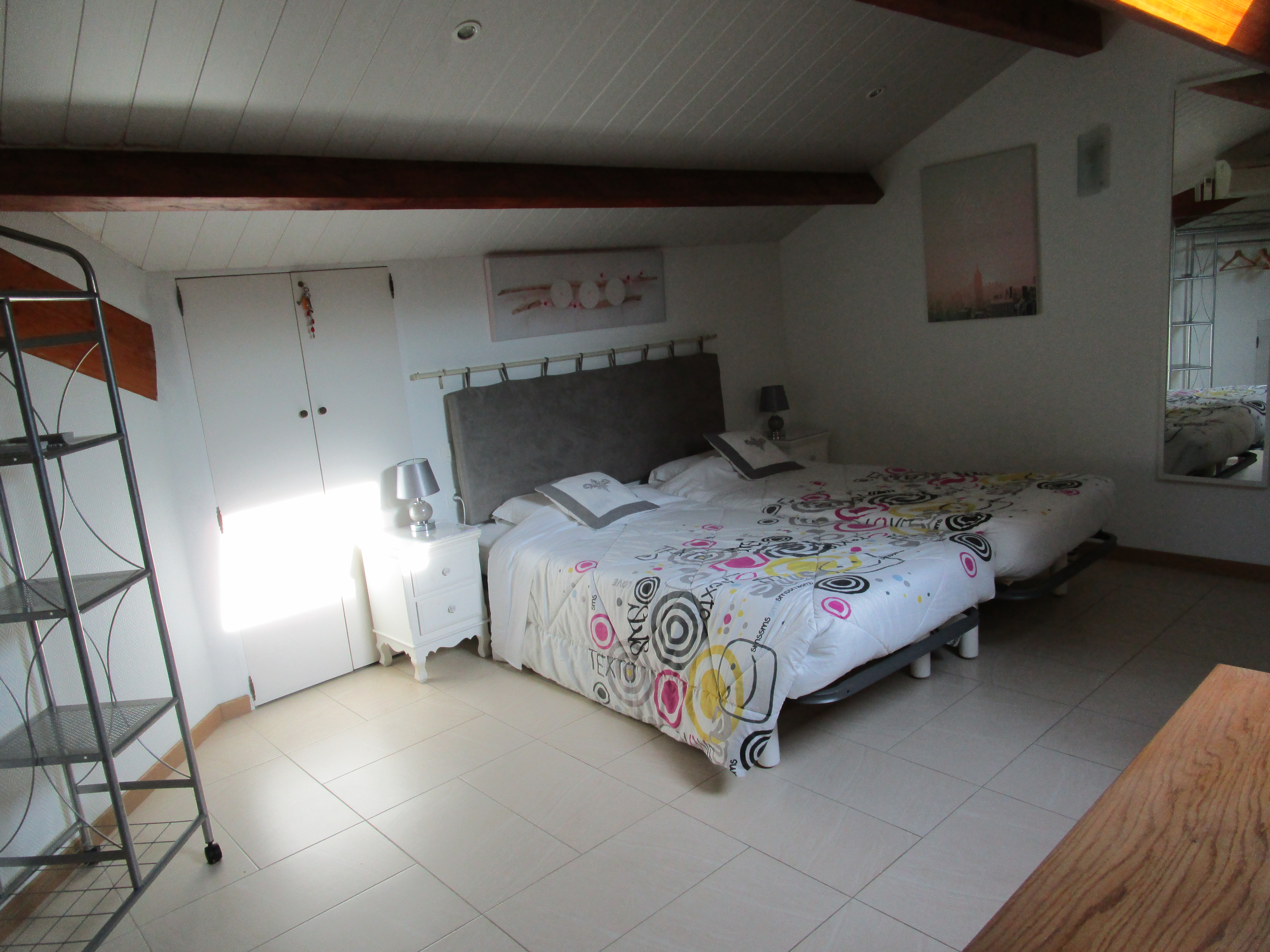 Appartement dans villa situé au 1er étage dans un quartier calme à 200 m du village. Cet appartement est composé d'une cuisine américaine, un séjour avec deux vélux motorisés. Les pièces sont grandes et lumineuses. Une des deux chambres est mansardée. Possibilité de prendre le petit-déjeuner sur le balcon ou la véranda. Entièrement équipé avec climatisation. Le meublé peut accueillir 4 adultes et 2 enfants. Pour votre voiture, deux emplacements privatifs sont à votre disposition.