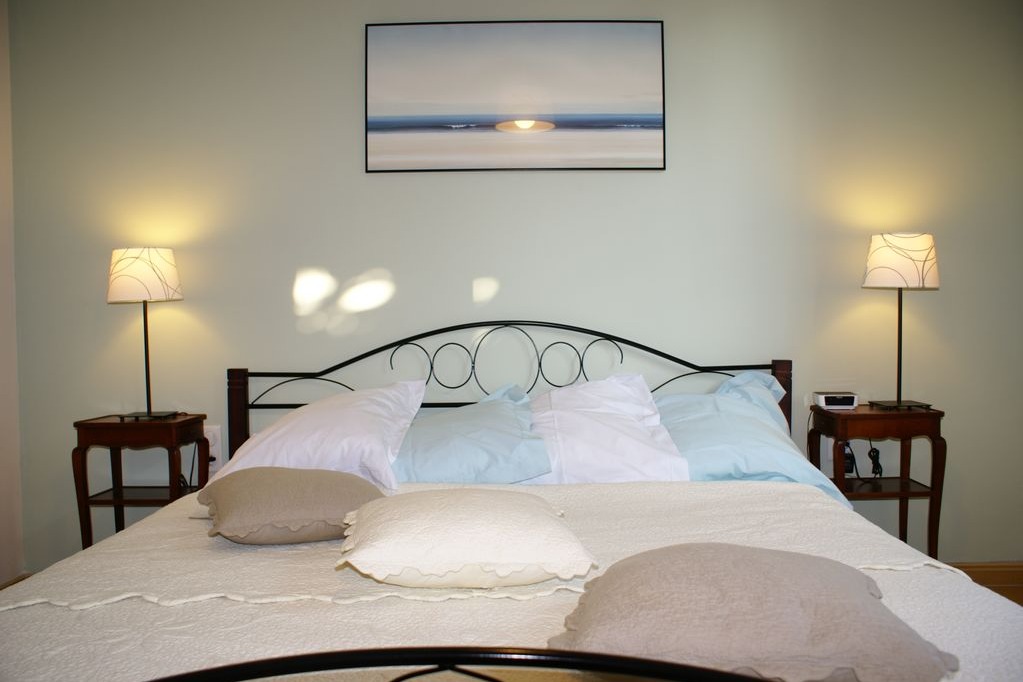 A l'aile Est vous ferez l'expérience d'un grand lit King Size dans une chambre calme qui donne sur une salle d'eau fonctionnelle, par une porte coulissante.