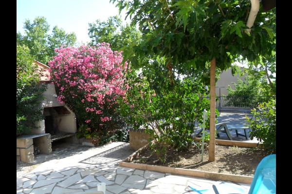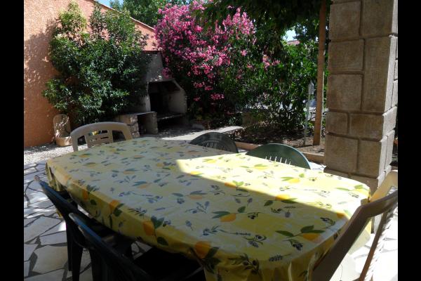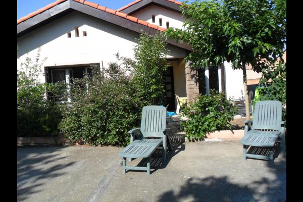 Très jolie maison mitoyenne de 83 m² en rez-de-jardin avec barbecue, grande terrasse avec salon de jardin et parking privé au centre du village de Pinet et à 500m de la campagne.