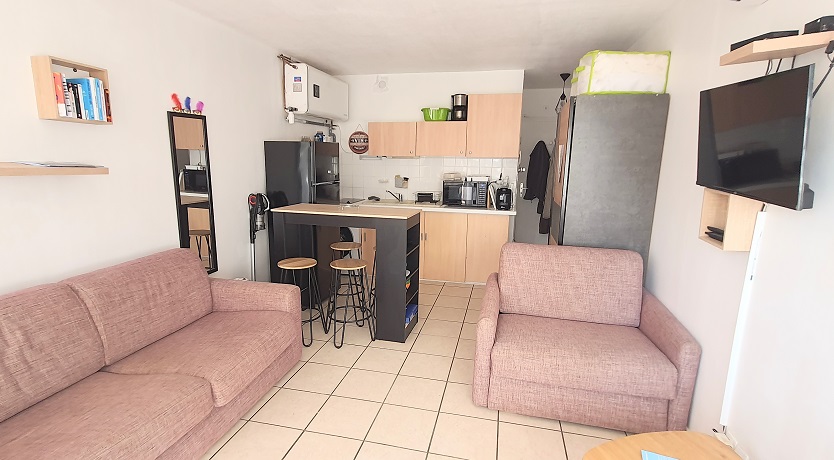 Studio lumineux et grande terrasse en centre port, à 10 minutes à pied de la plage du Môle.