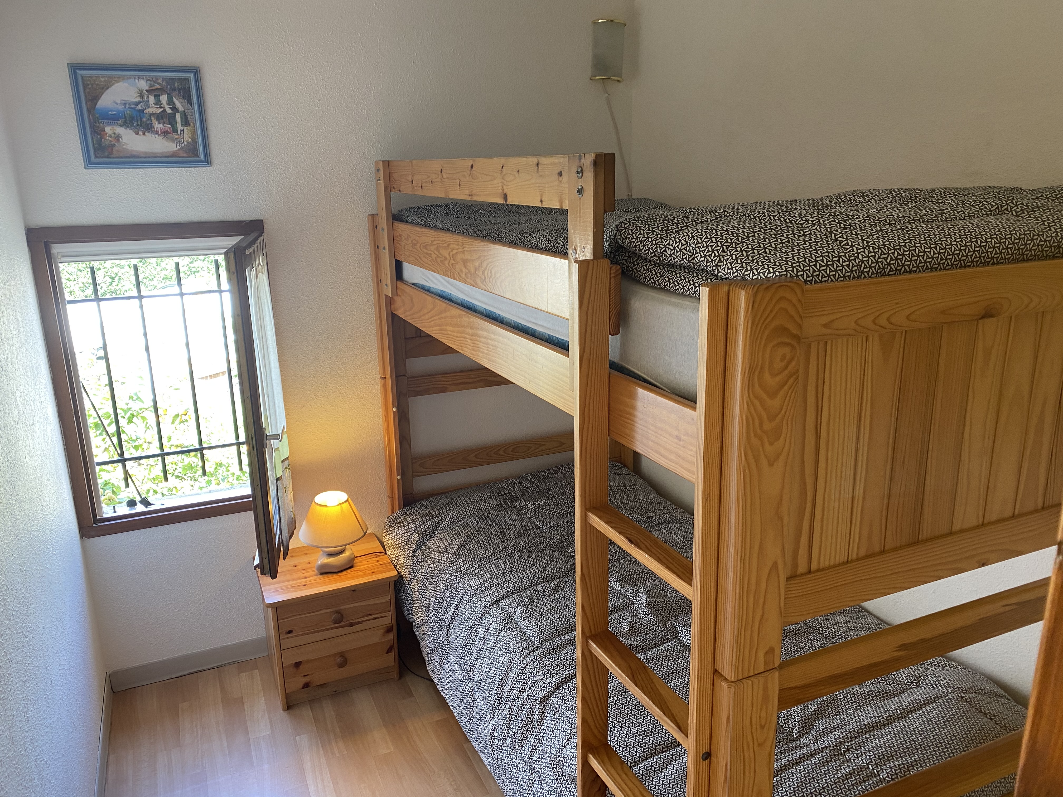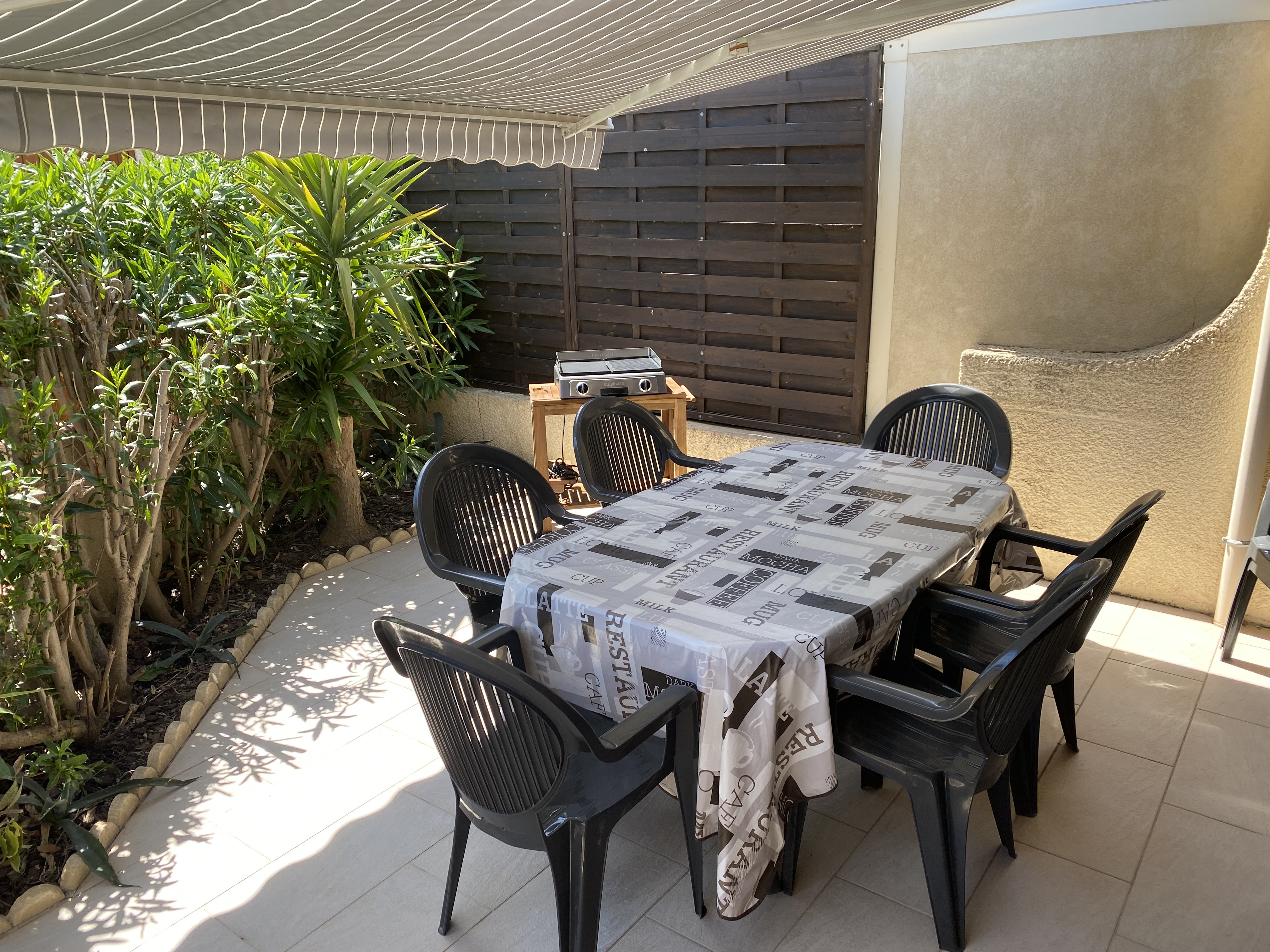 Villa mitoyenne tout confort dans résidence sécurisée. La terrasse est ensoleillée dès le matin pour prendre votre petit-déjeuner. Climatisation, wifi, lave-vaisselle, lave-linge, salon de jardin, plancha, store banne. Elle se compose de 2 chambres dont une avec lit en 140 et l'autre avec 2 lits en 90 superposés.