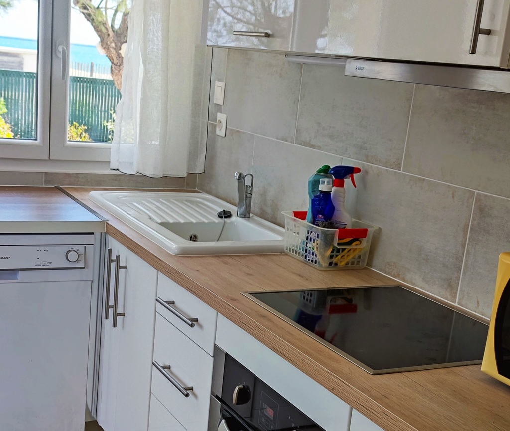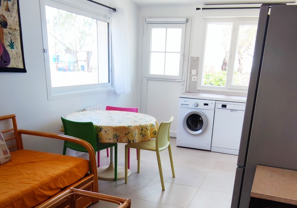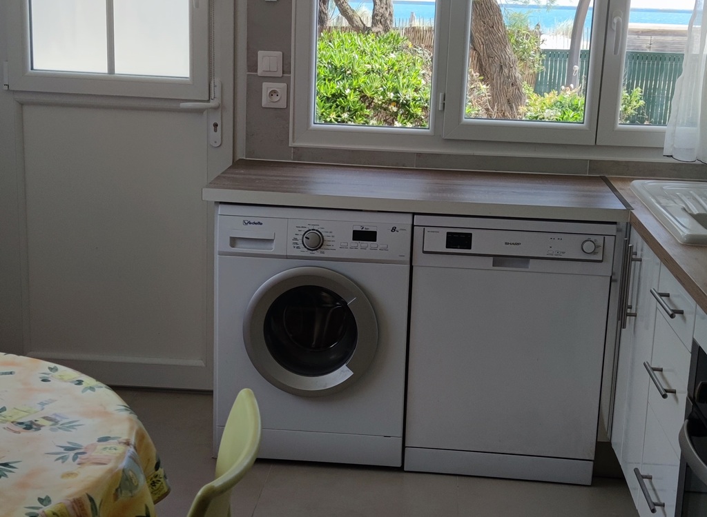 Cuisine complètement équipée avec lave-linge et lave-vaisselle.