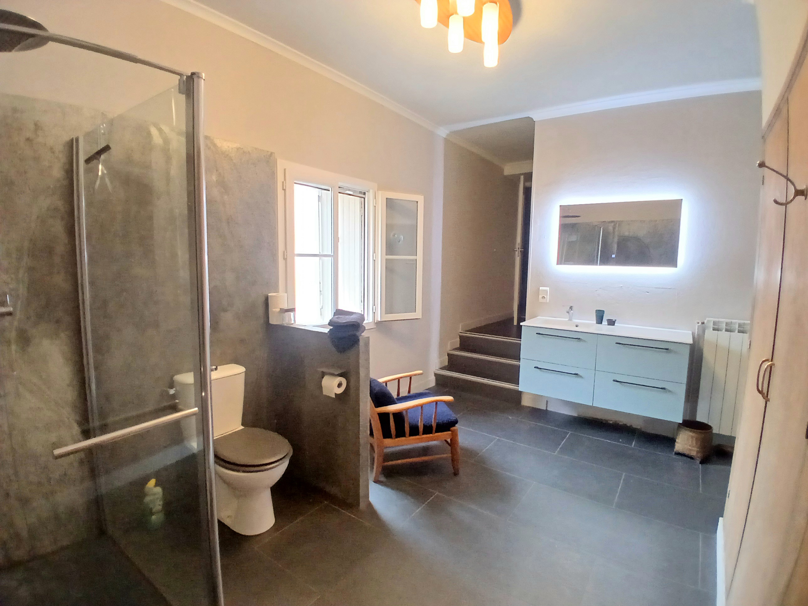 A l'étage, un escalier tournant vous mène vers plusieurs chambres au charme biscornu. Vous découvrirez d'abord une première chambre avec sa propre salle de bains, suivie d'une immense salle de bains commune. Ensuite, vous accéderez à deux autres chambres, toutes interconnectées. 3 salles d'eau au total. Et pour finir... une dernière chambre spacieuse avec vue sur la rue et l'ultime salle de bain !