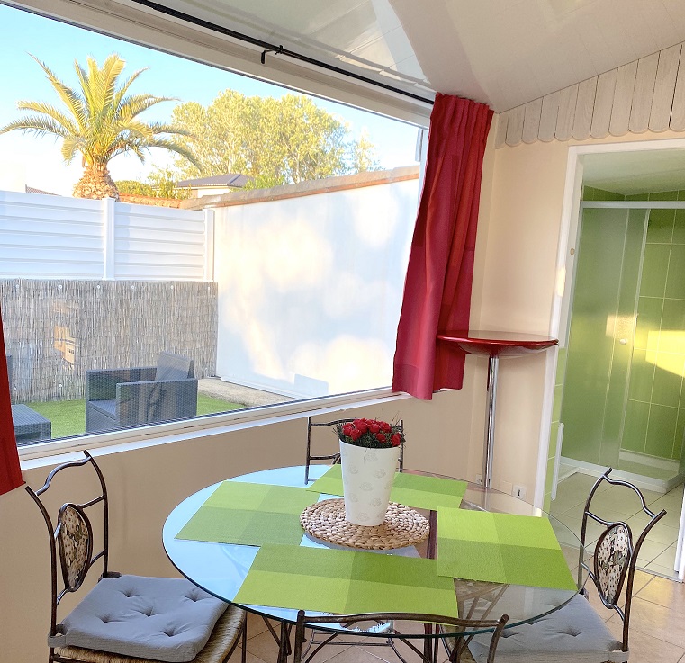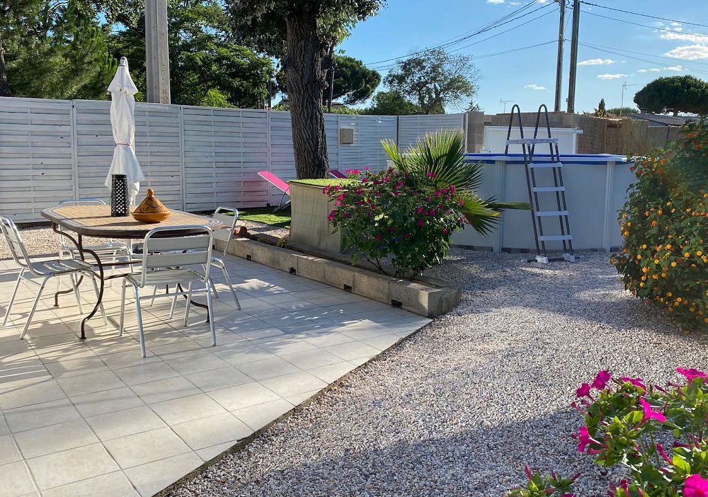 Villa indépendante climatisée de 45 m² sur 3 faces libres sur propriété privée dans un quartier résidentiel au calme, à côté du Cap d'Agde et du Grau d'Agde. Plage à 5 mn à pied.