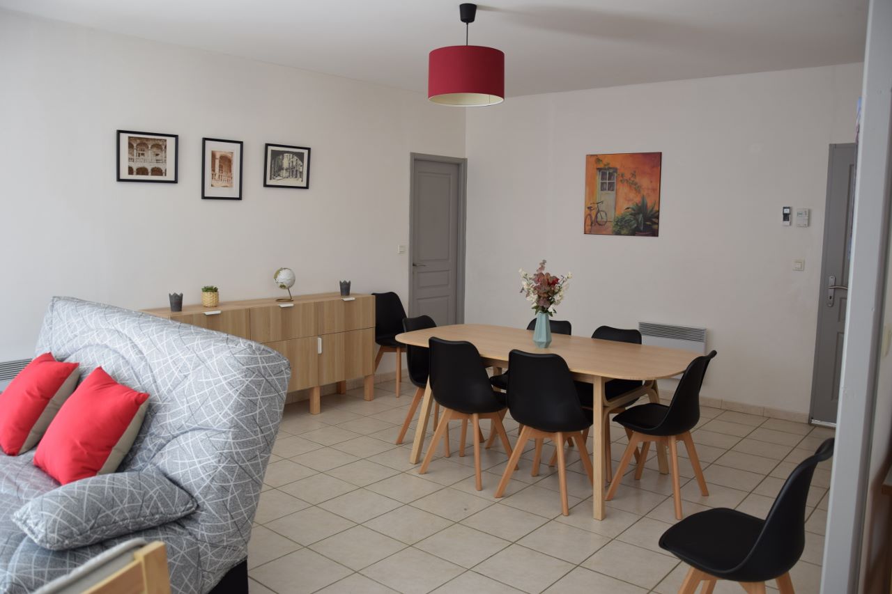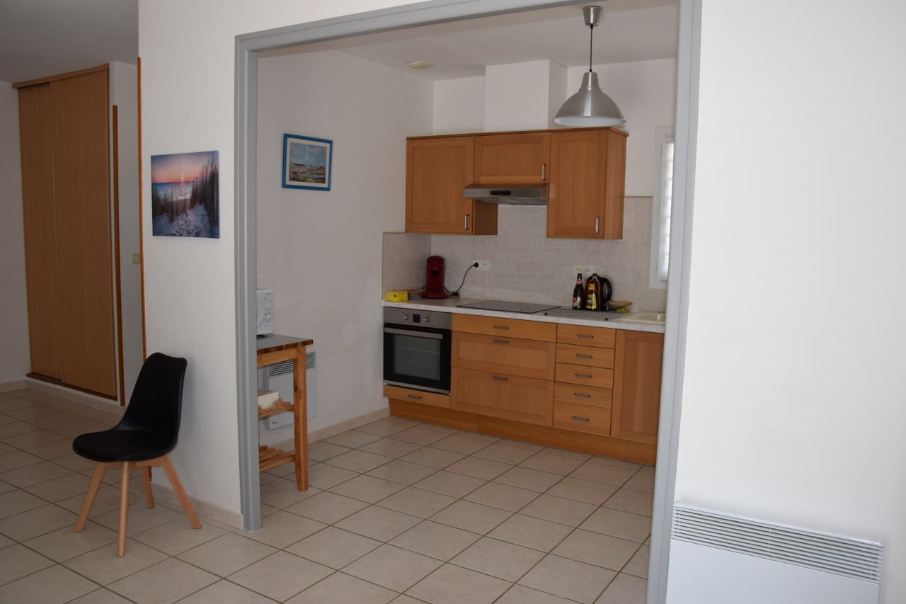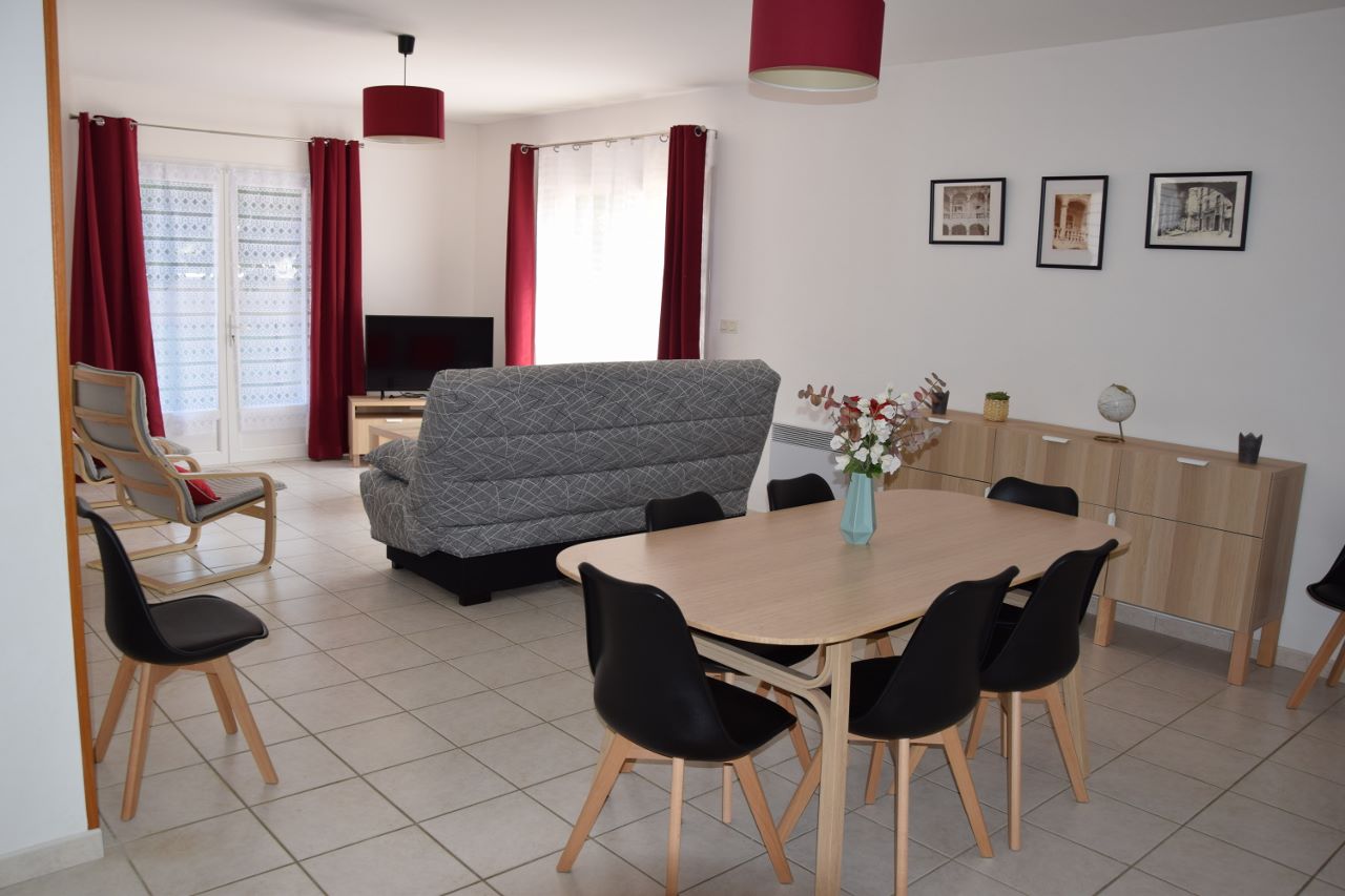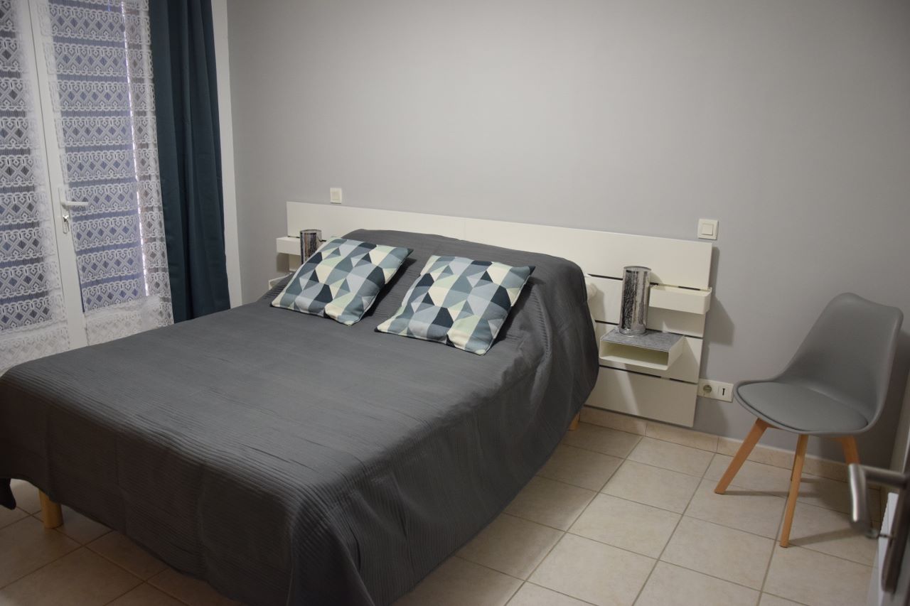 Belle villa de 100 m² de plain-pied, à 500m du centre du village, dans un quartier très calme. Grand jardin clos et arboré avec accès privé et portail électrique. Parking pour 2 à 3 voitures. Mobilier et équipements neufs.