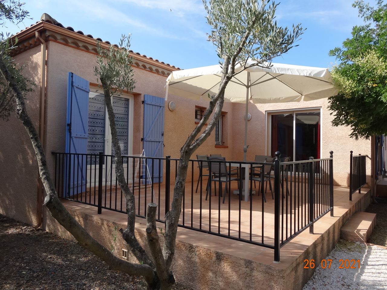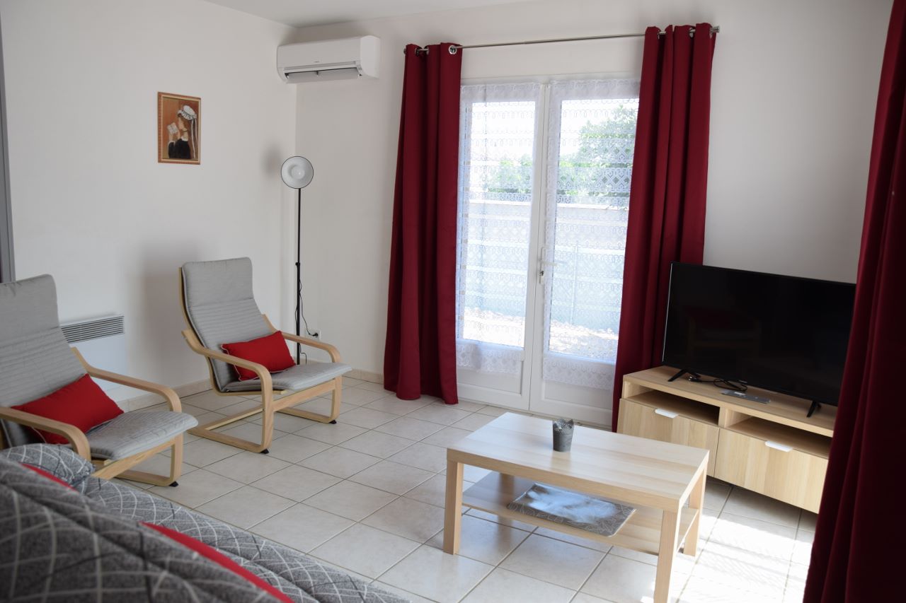 Belle villa de 100 m2 de plain-pied, sur un jardin de 500 m2, clos et arboré ; accès privé avec portail électrique télécommandé et parking pour 2 à 3 voitures. Elle peut accueillir 6 à 8 personnes. Entièrement climatisée (pompe à chaleur réversible). Mobilier et équipements neufs.