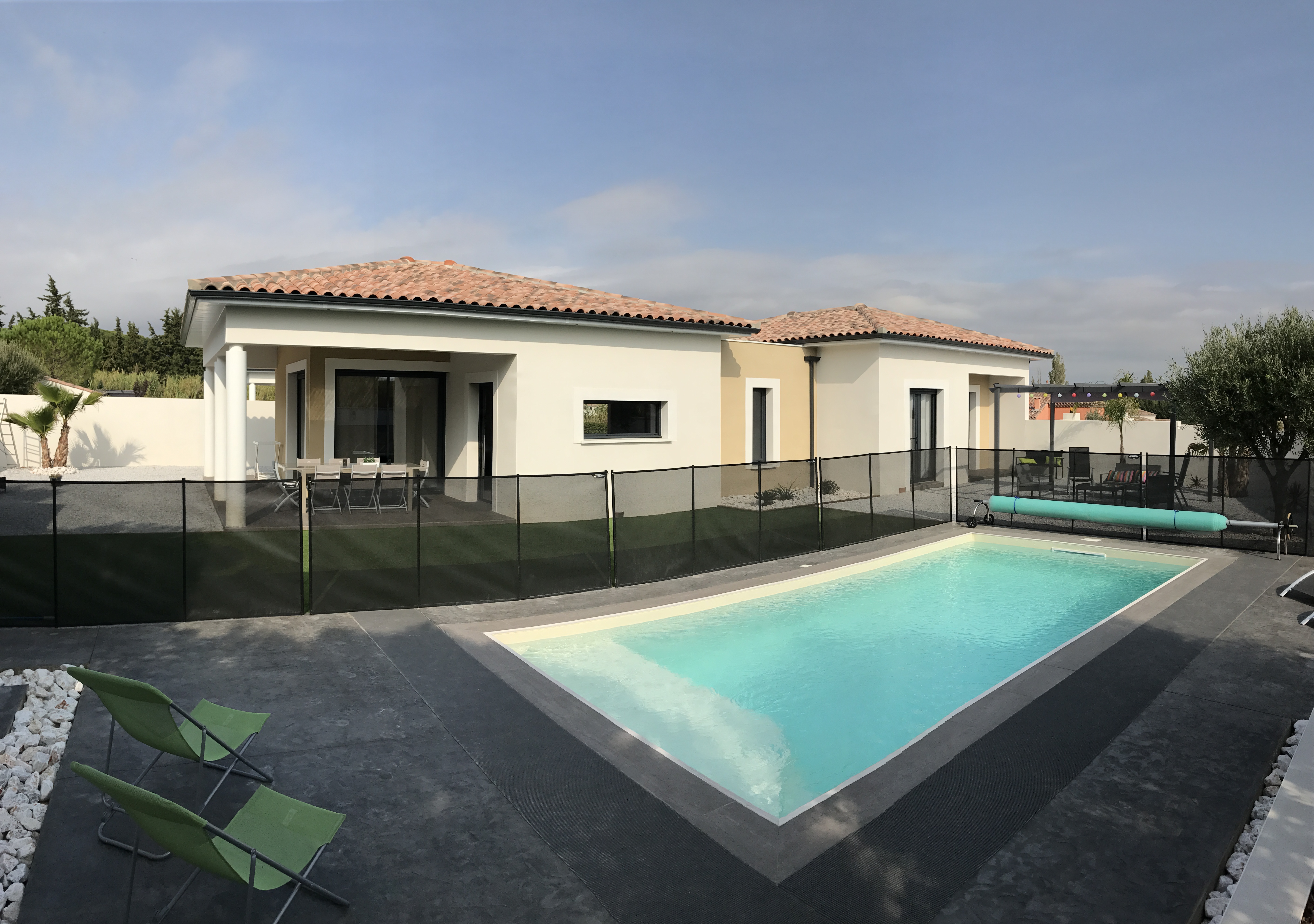 Salons de jardin, barbecue, parking. Superficie : 110 m².