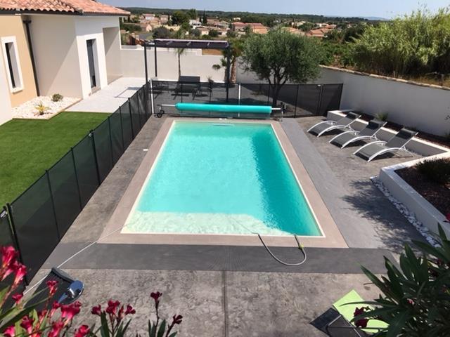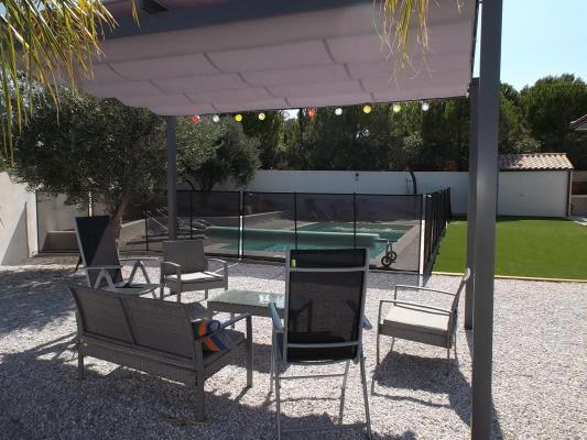 Accès direct sur la piscine sécurisée chauffée de juin à octobre (7.50 x 3.50) avec plagette enfants.