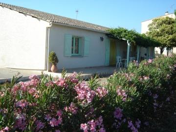 A mi-distance de la Méditerranée et des Causses du Larzac, à 500m du centre du village, sur ancienne propriété viticole et horticole, 2 gîtes mitoyens de plain-pied au rez-de-chaussée d'un bâtiment de construction récente. Séjour/coin-cuisine, ch. 1 (1 lit 2 pers.), ch. 2 (2 lits 1 pers.), salle d'eau, wc , chauffage électrique, TV. Terrain commun (environ 7500 m²), terrasse, salon de jardin, barbecue, parking, piscine (13x5,80) commune avec le propriétaire. Sup. 55 m². Tennis de table, pétanque. Deux chambres d'hôtes chez le propriétaire.