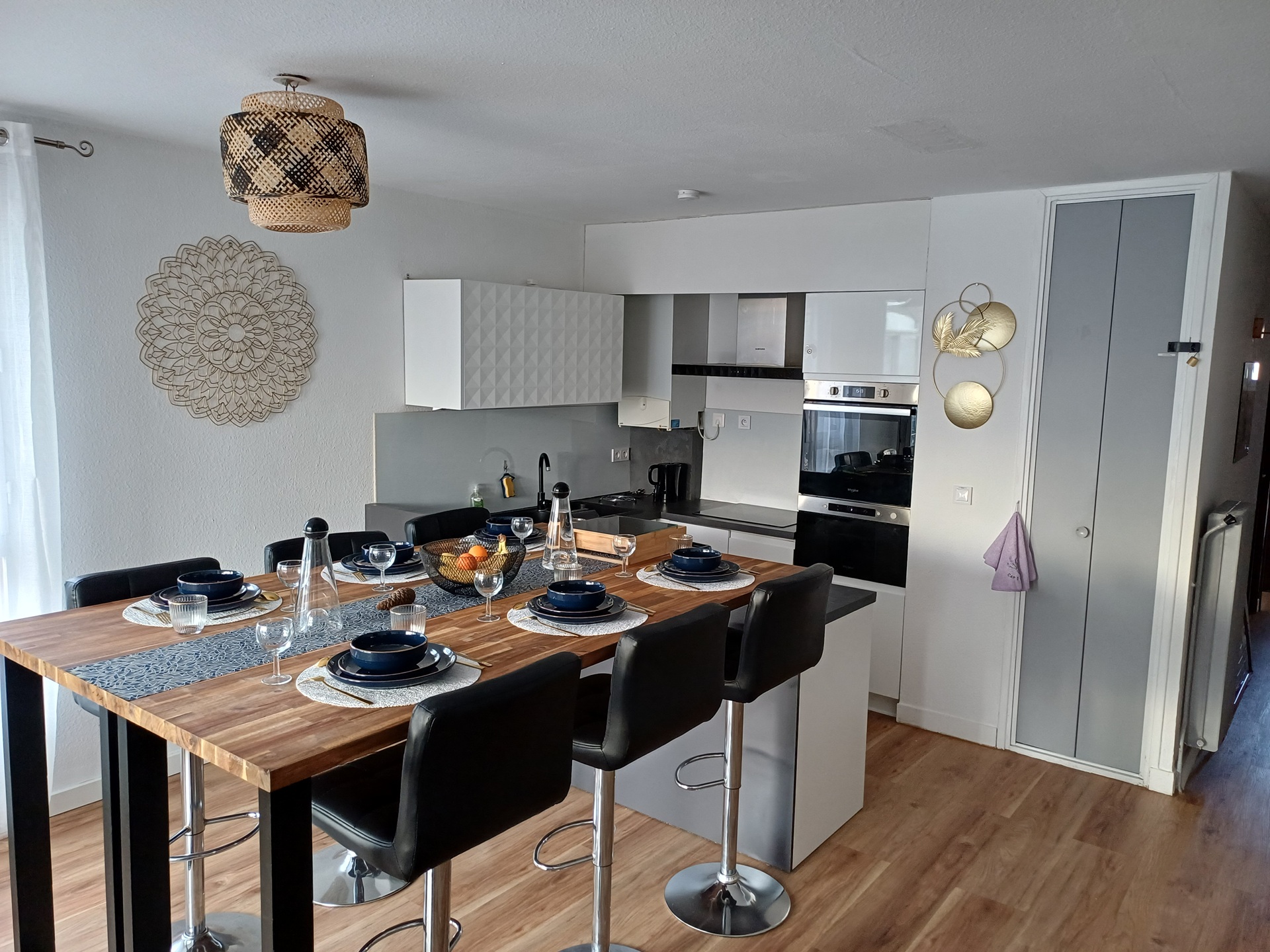 Appartement spacieux rénové en 2025 avec cuisine équipée et grand mange debout.