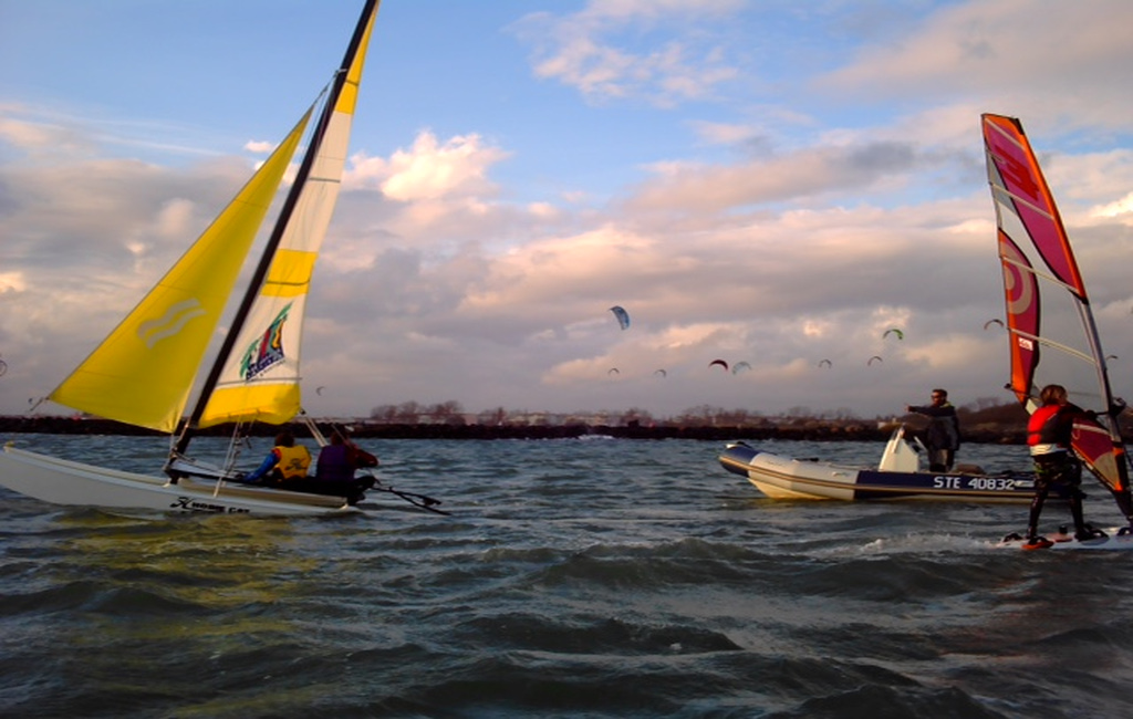 École de sport adultes : catamarans (Hobie Cat 16), planche à voile, dériveur 420.