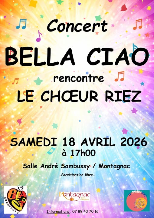 La chorale BELLACIAO de Montagnac et le Choeur RIEZ de Cournonsec vous invitent à un concert autour de chansons de variété Française et du Monde.