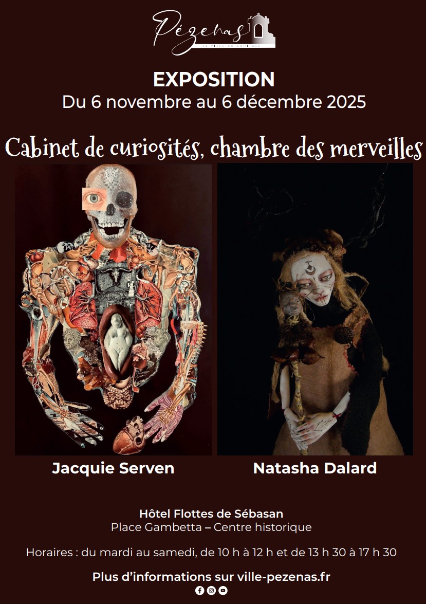 En écho au rituel festif Martror (La Fèsta dels Mòrts), les artistes Jaquie Serven et Natasha Dalard proposeront l’exposition « Cabinet de curiosités, chambre des merveilles » à l’hôtel Flottes de Sébasan du jeudi 6 novembre au samedi 6 décembre 2025.