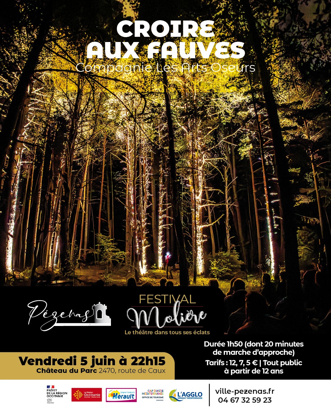 Croire aux fauves, par la Compagnie Les Arts Oseurs : une expérience nocturne en forêt mêlant récit, musique et théâtre.