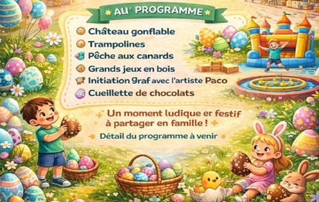 À l’occasion du week-end de Pâques, le Mail de Rochelongue se transforme en un véritable espace de jeux et de gourmandises pour les familles. Petits et grands sont invités à profiter d’un programme d’animations festives dans une ambiance conviviale et printanière.