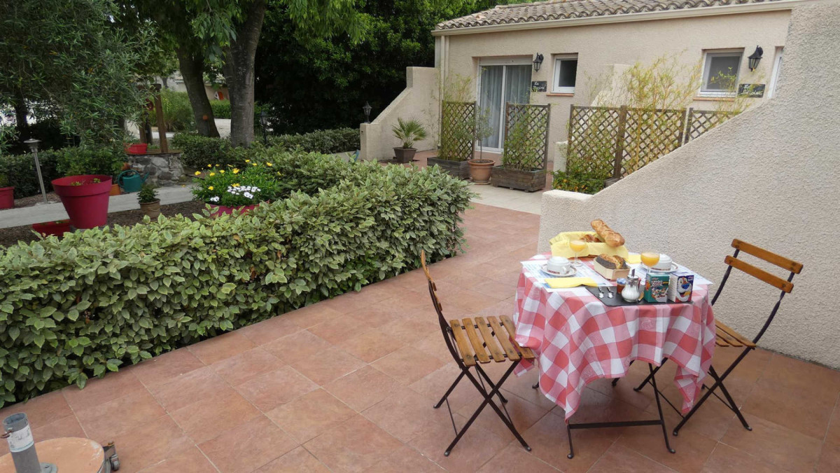Selon la saison, le petit-déjeuner est servi dans la salle à manger/salon ou sur la terrasse.