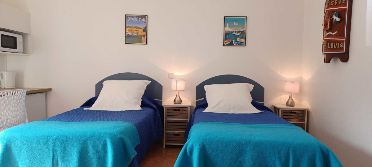 ATTRAITS TOURISTIQUES : Agde (cité phocéenne) et son chateau Laurens, Cap d’Agde (Port et Parc loisirs Aqualand), bassin de Thau (ostréiculture), canal du midi, Pézenas, Sète (port de pêche et commerce), Béziers les halles et les neufs écluses de Fonseranes – Chambre climatisée de 17 m2 en rez-de-chaussée avec salle d’eau, WC indépendant,